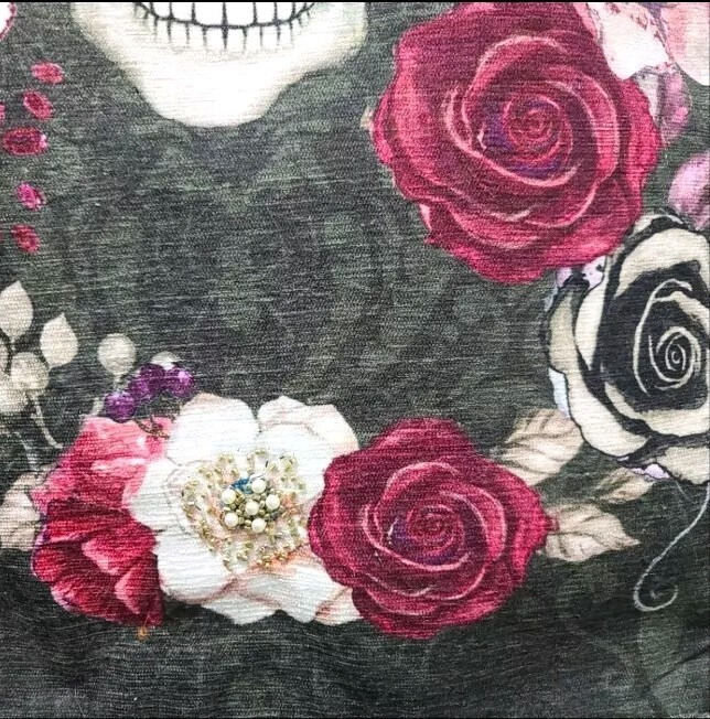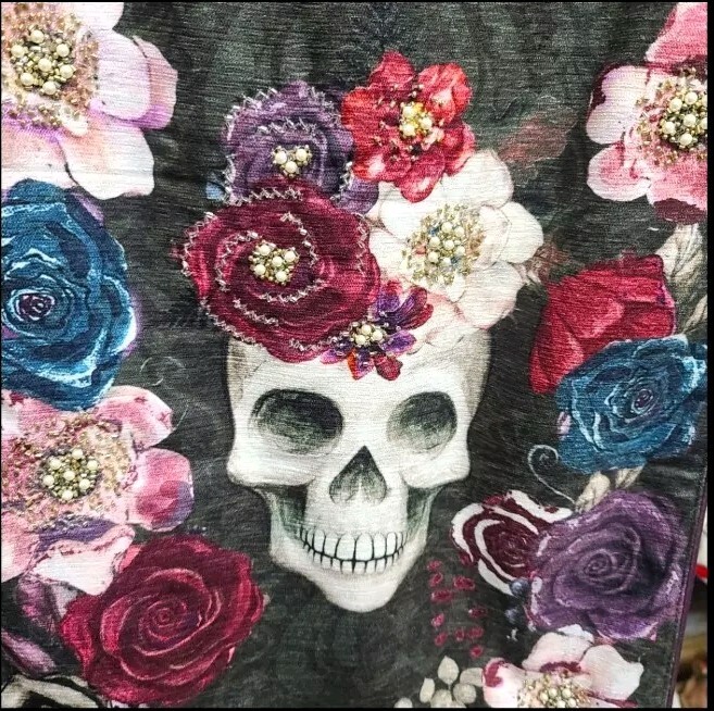как выглядит Sugar Skull Day Of Dead Beaded Table Runner Sparkly Jeweled Flowers Halloween фото