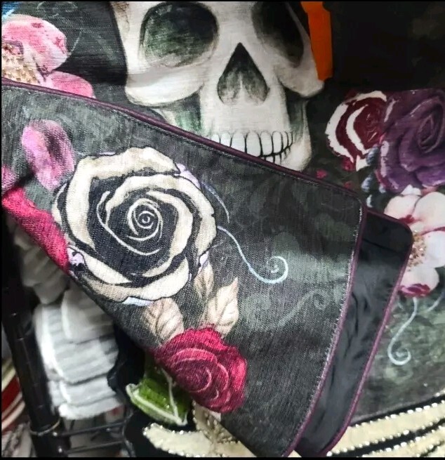 Sugar Skull Day Of Dead Beaded Table Runner Sparkly Jeweled Flowers Halloween