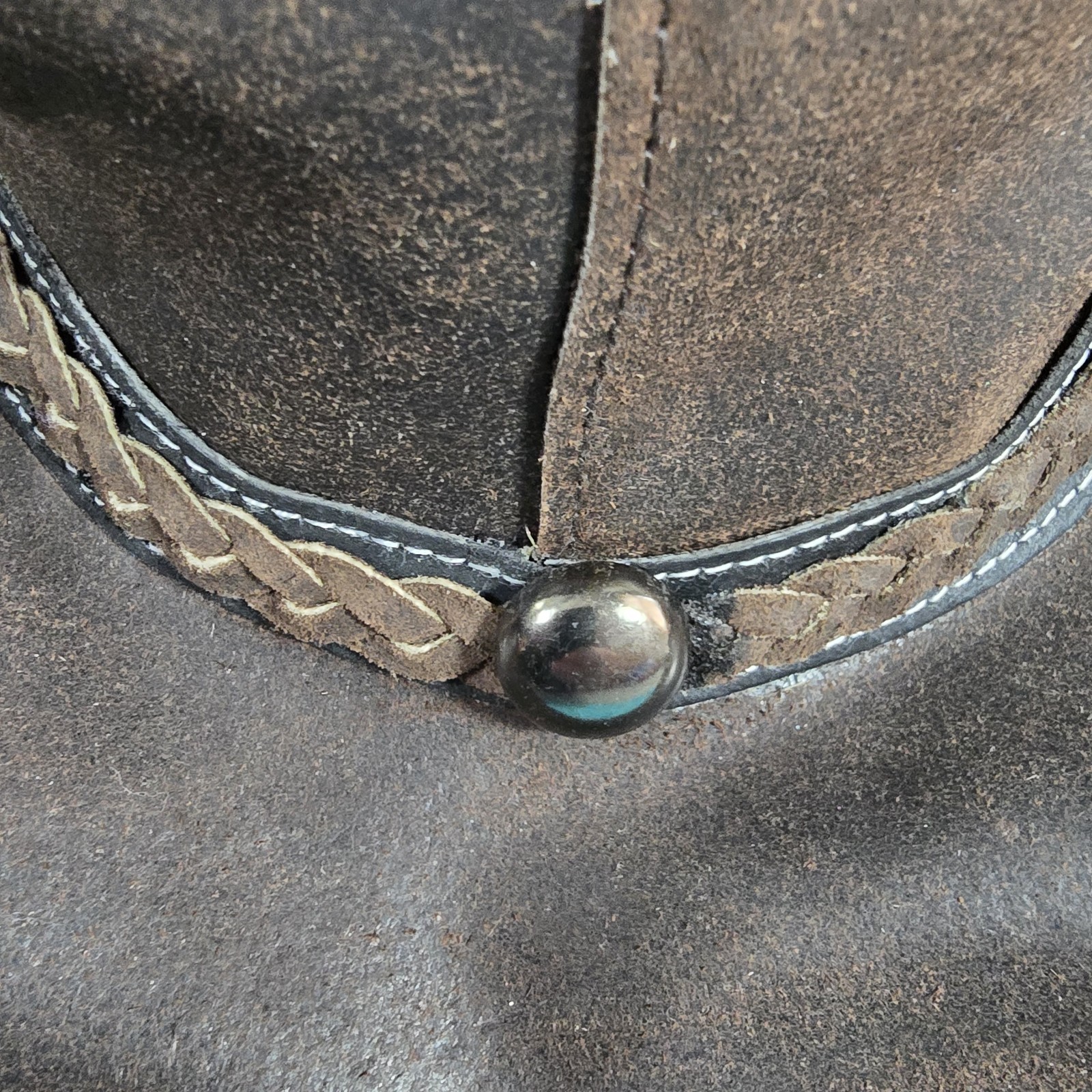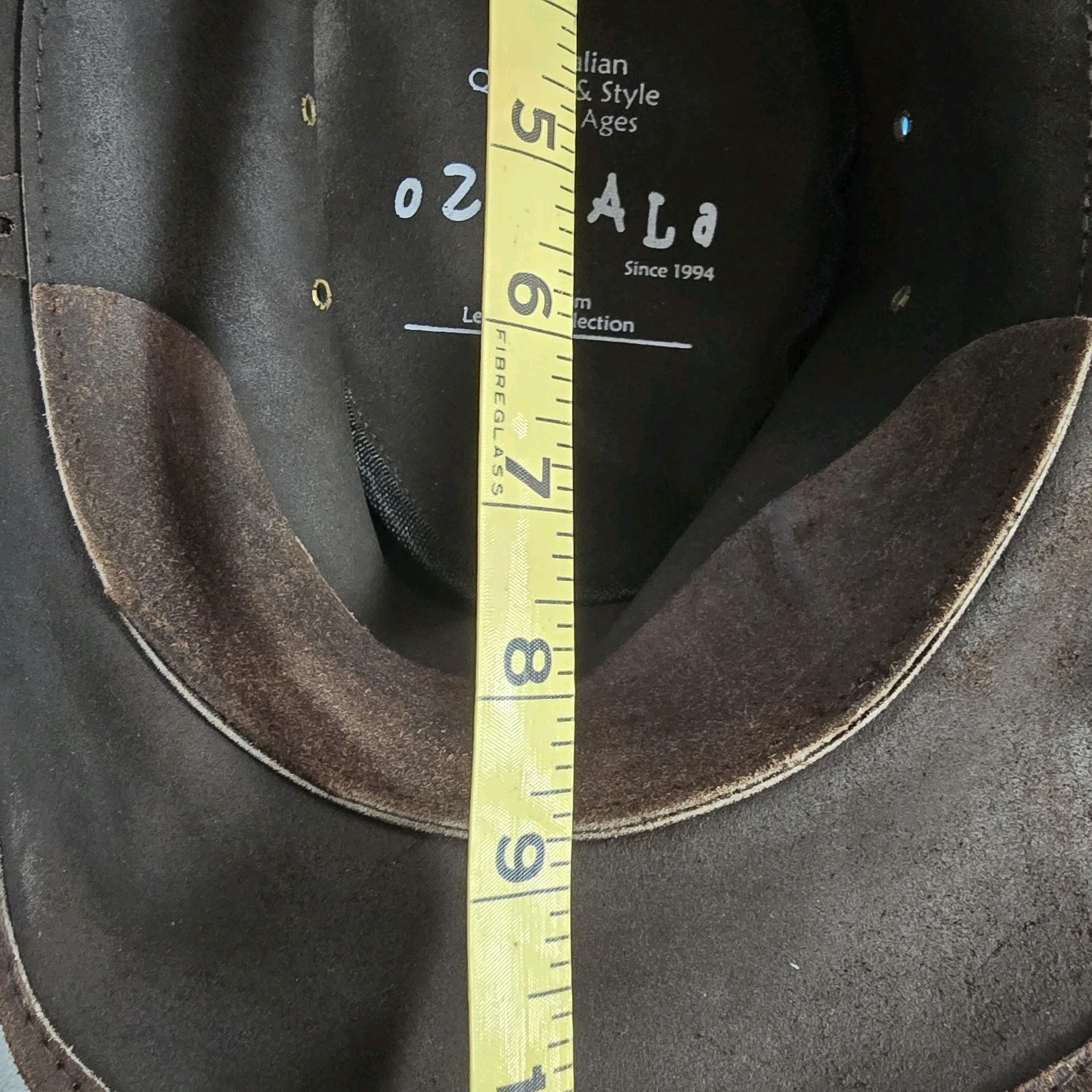 Oztrala Premium Leather Outback Hat Brown Size L Australian Bush Cowboy Hat