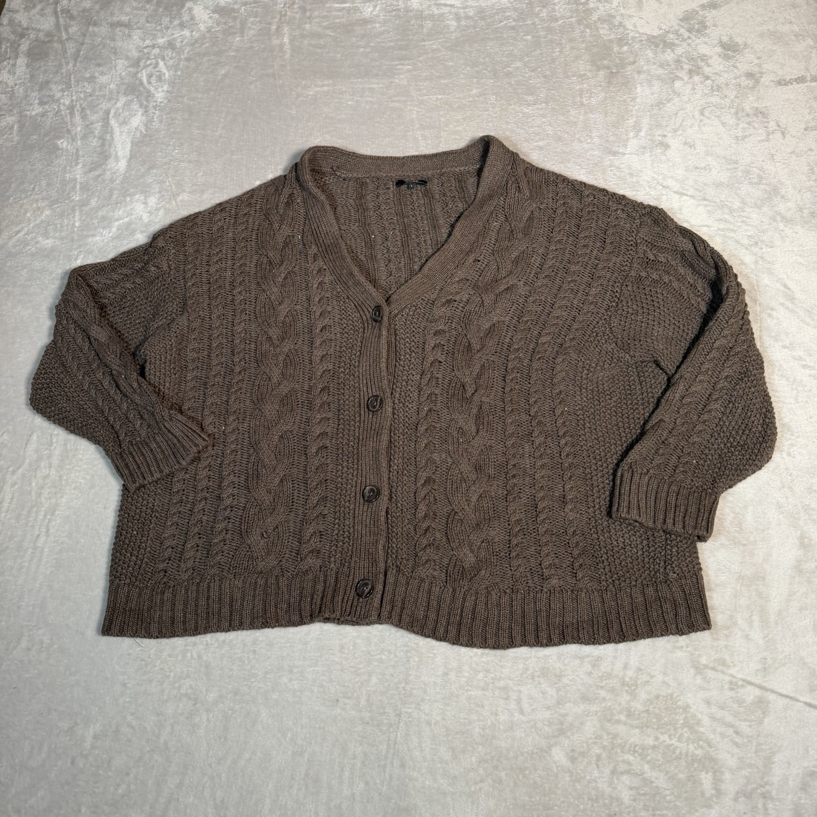 Quince Cardigan Womens Large Brown Organic Cable Knit Oversized Fisherman