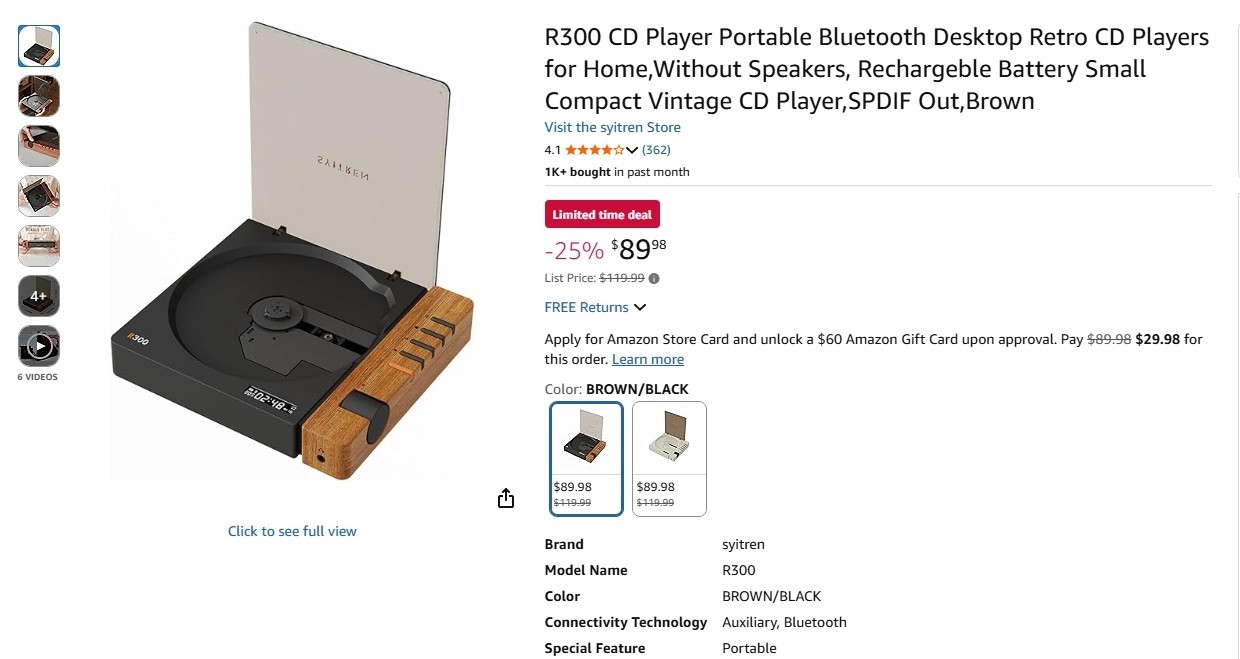 как выглядит SYITREN R300 Portable Bluetooth CD Player  USED фото