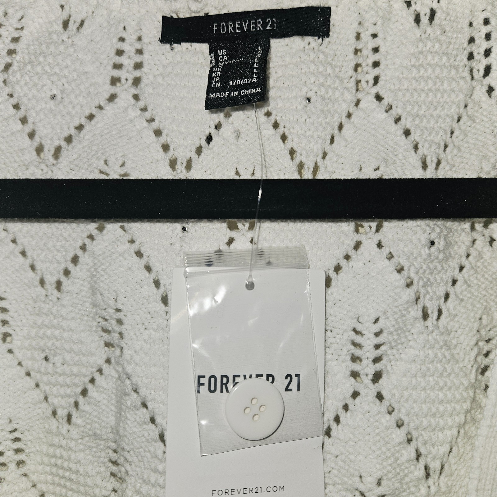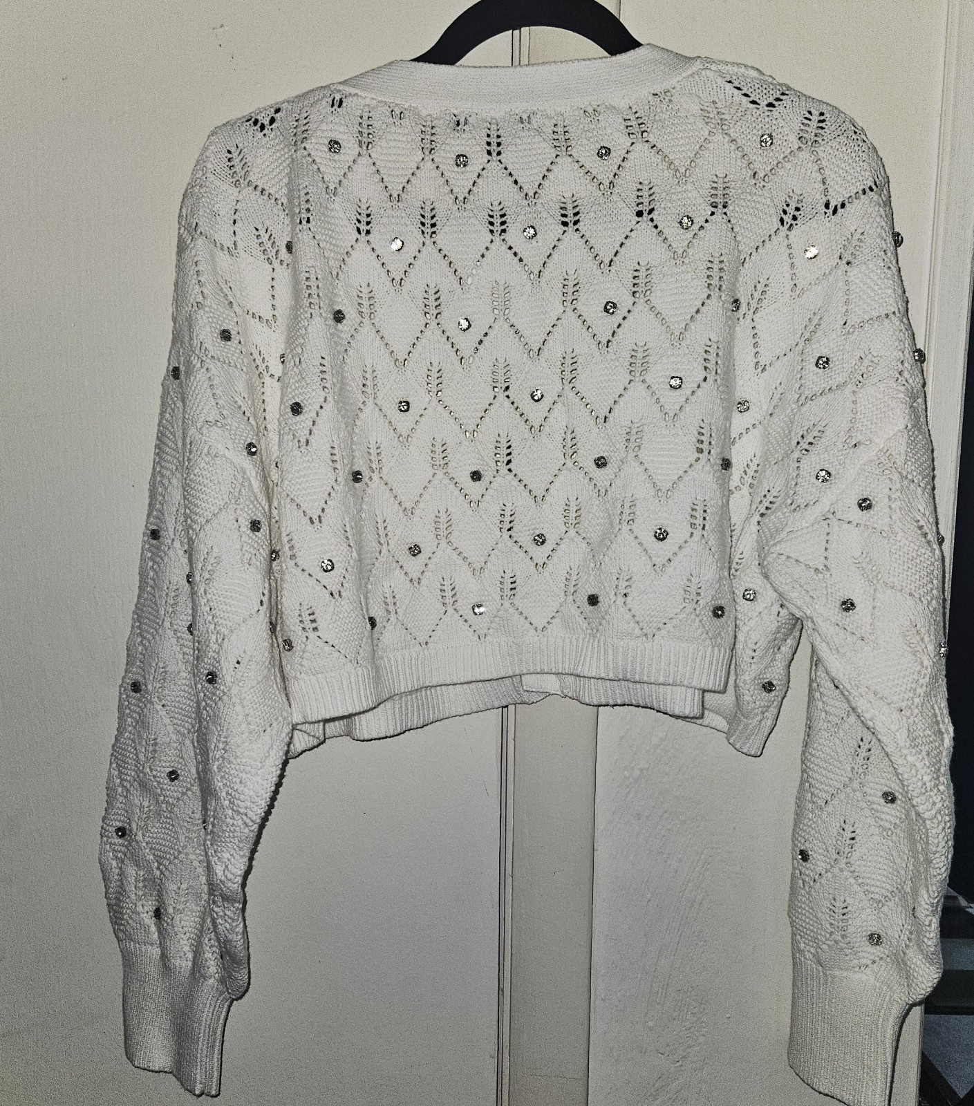 Forever 21 White Crop Cardigan Sweater with rhinestone bling, Size Large