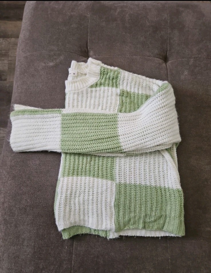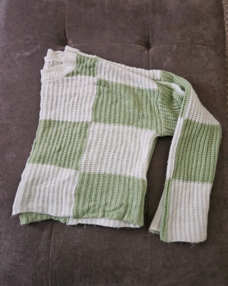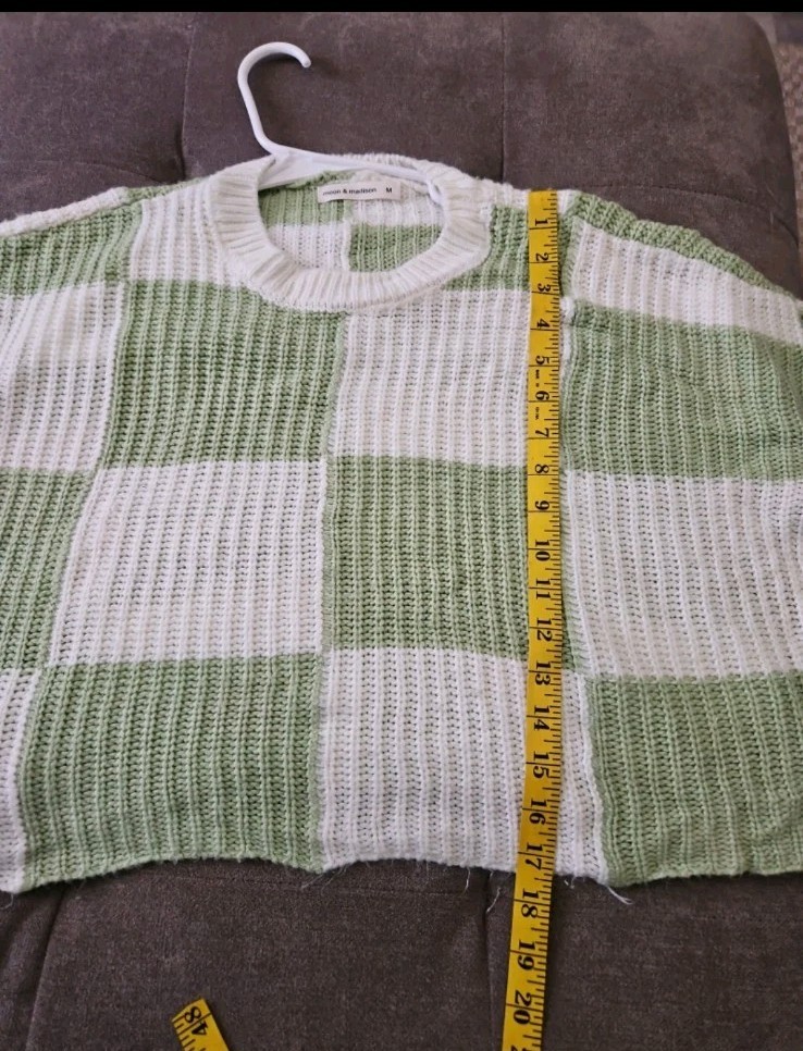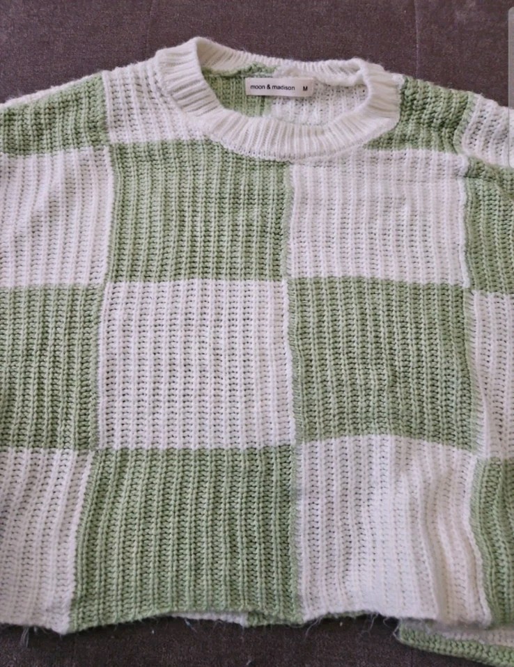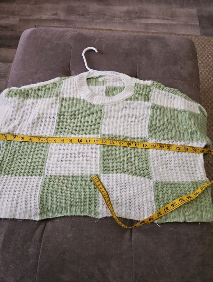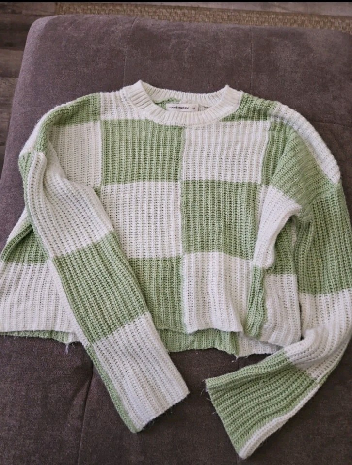 как выглядит White Green Checkered Moon Madison Cropped Sweater Womens Size Medium фото