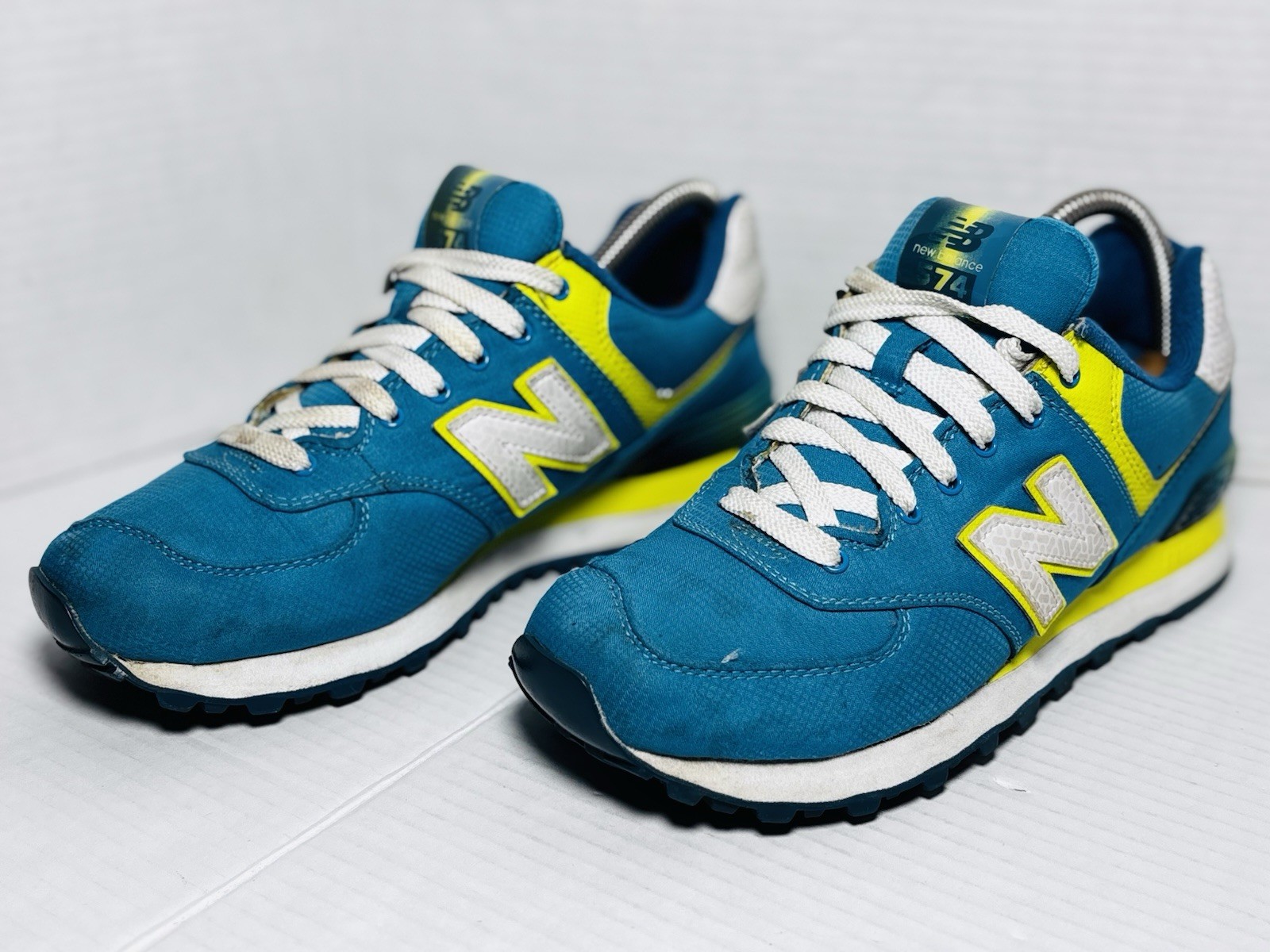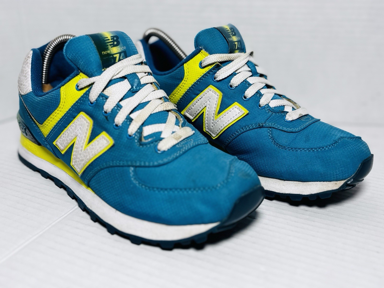 как выглядит New Balance 574 WL574APT Womens 7.5 Blue Yellow ENCAP Running Shoes фото