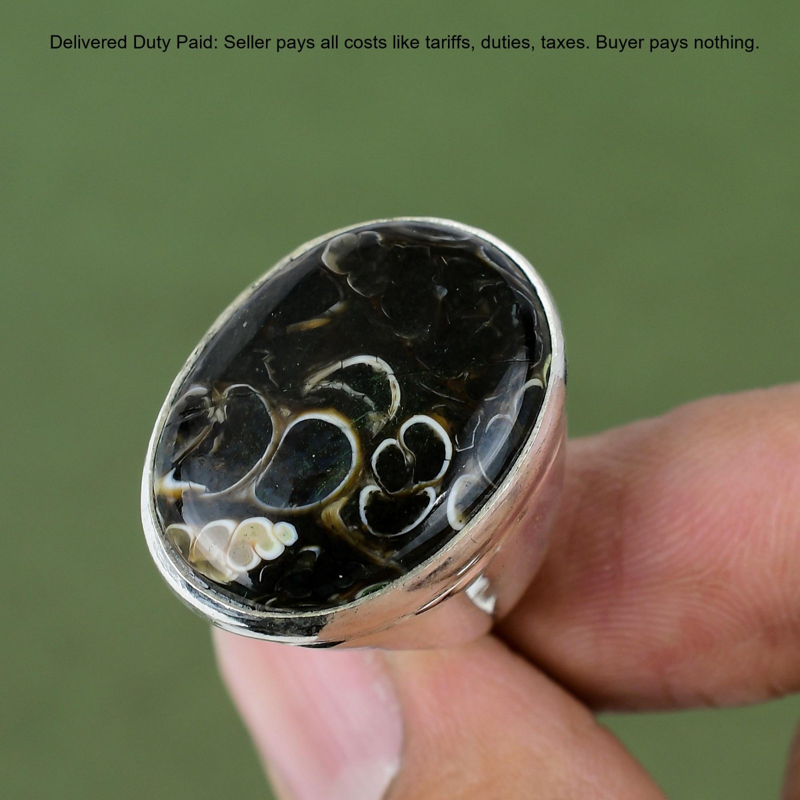 Certification: 100% Genuine Natural Turritella Agate Ring