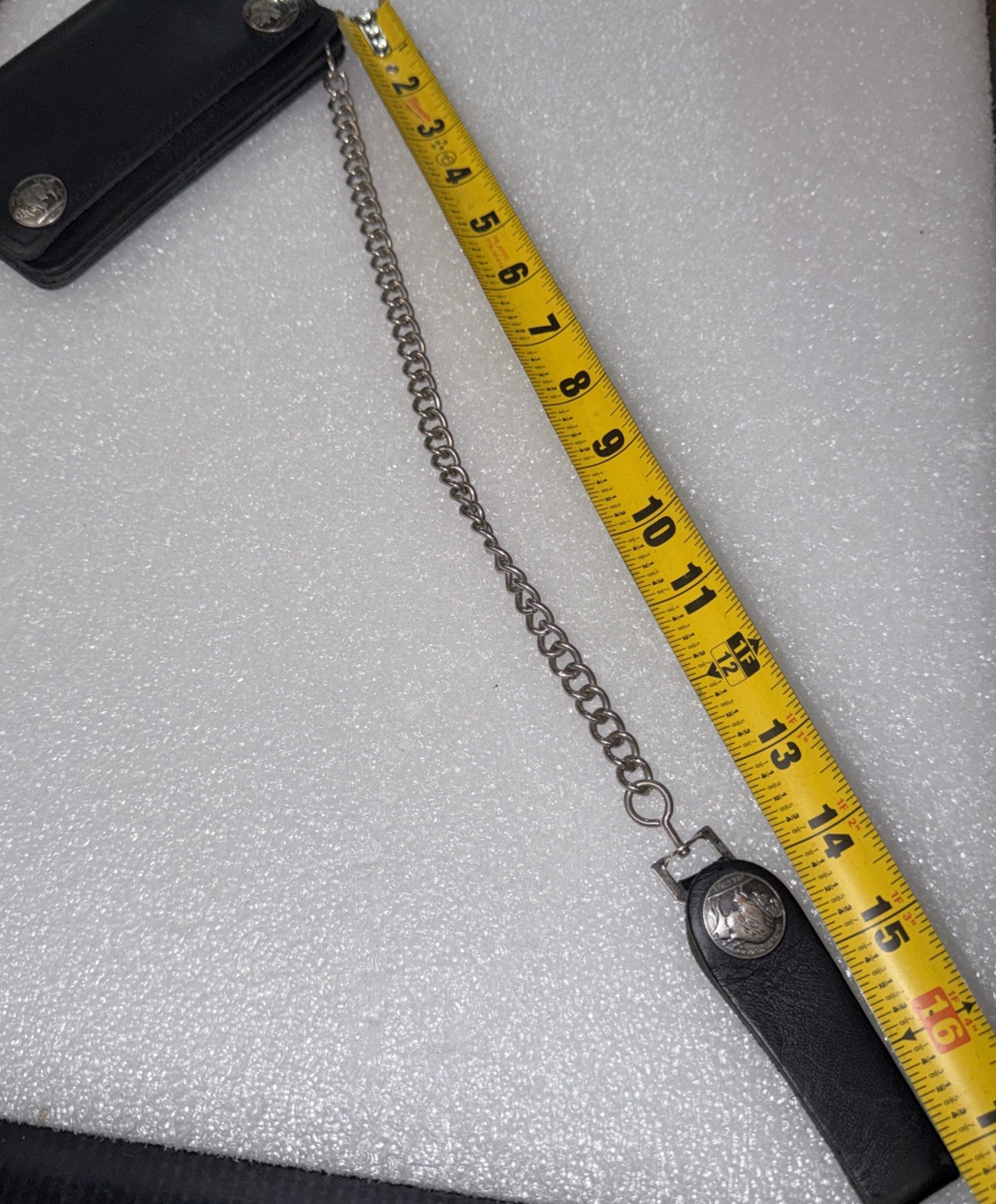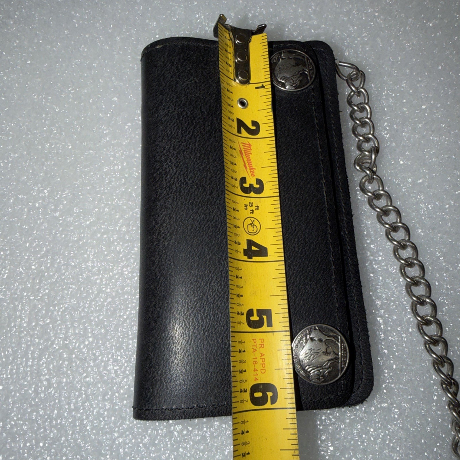 Buffalo Nickel Black Leather Trucker Wallet 6 x 3.5 With 12 Chain MADE IN USA