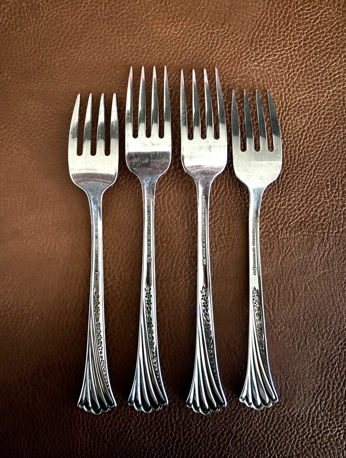 как выглядит Oneida SPRING GLEN 2 Dinner Forks 2 Salad Forks Stainless Flatware 4 Pcs EUC фото