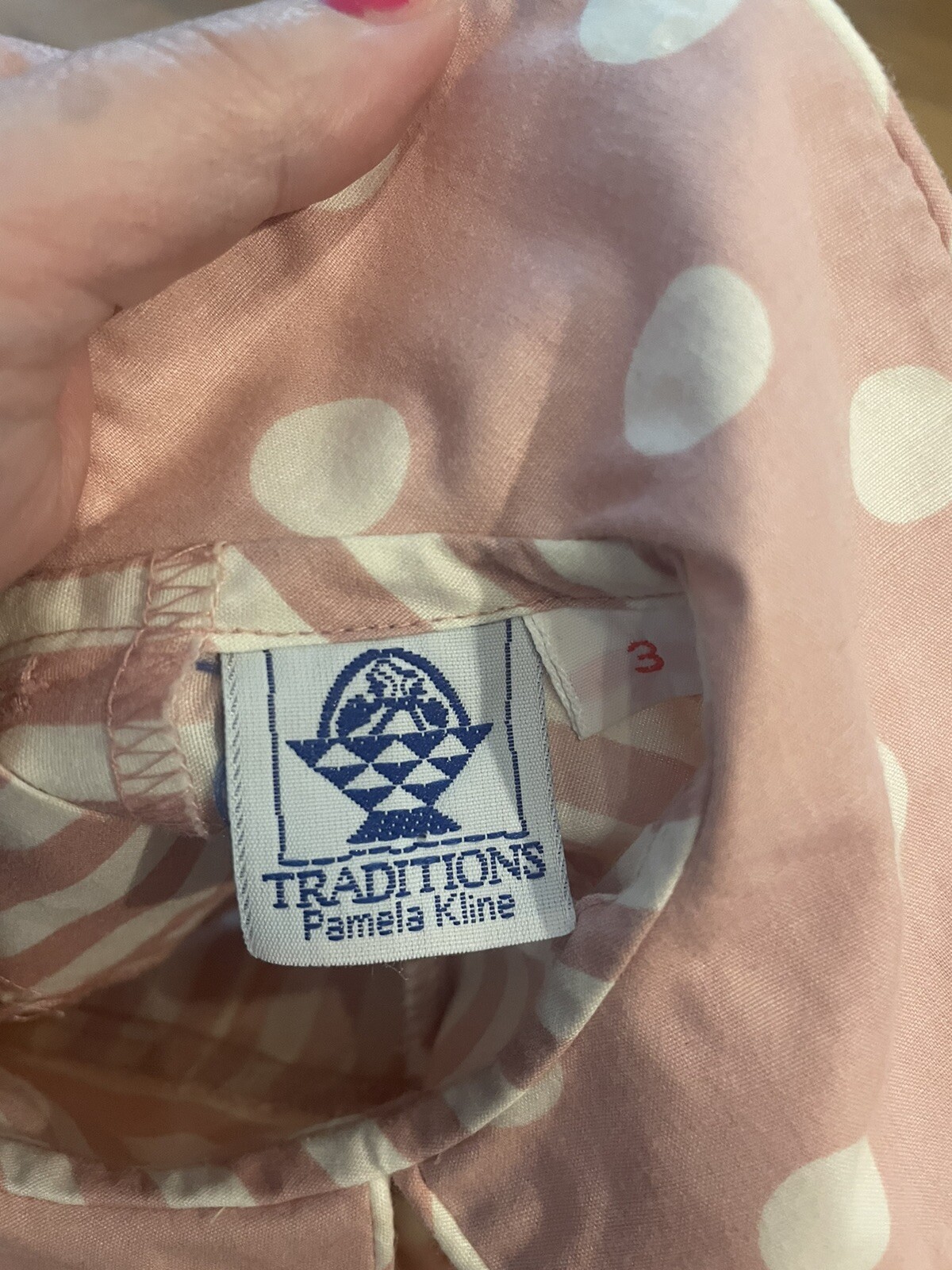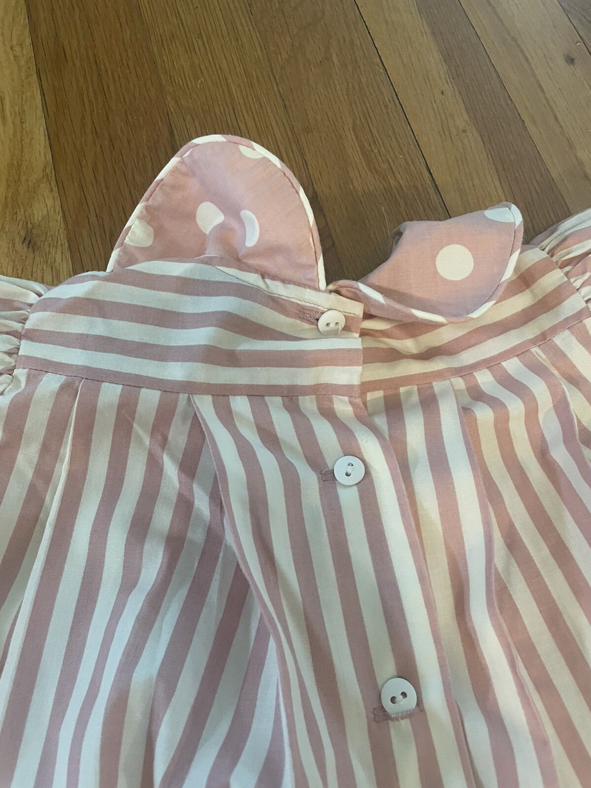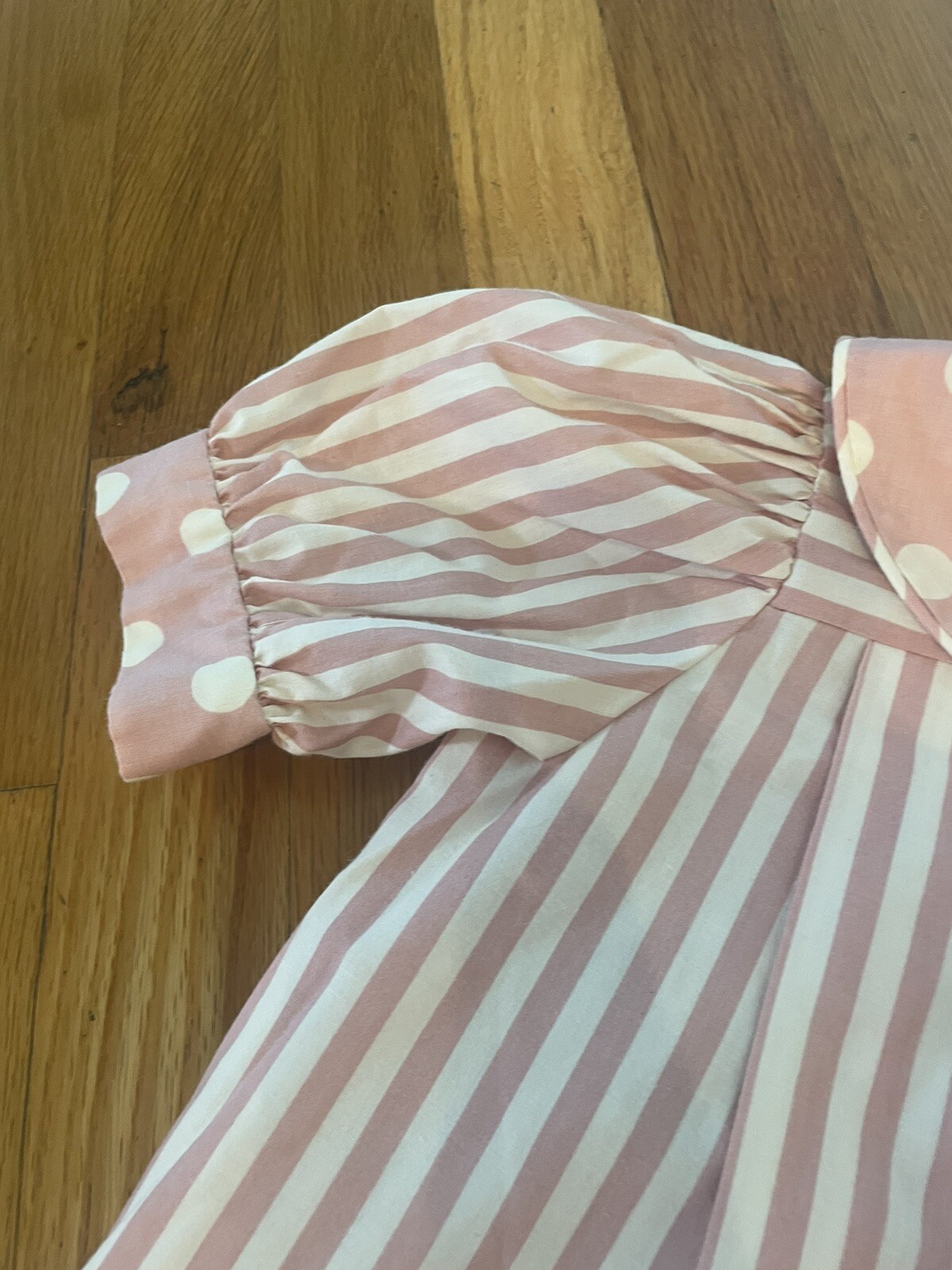 как выглядит Vintage Pam Kline Girls Size 3T Dress Pink Stripes Polka dots 70s/80s Buttons фото