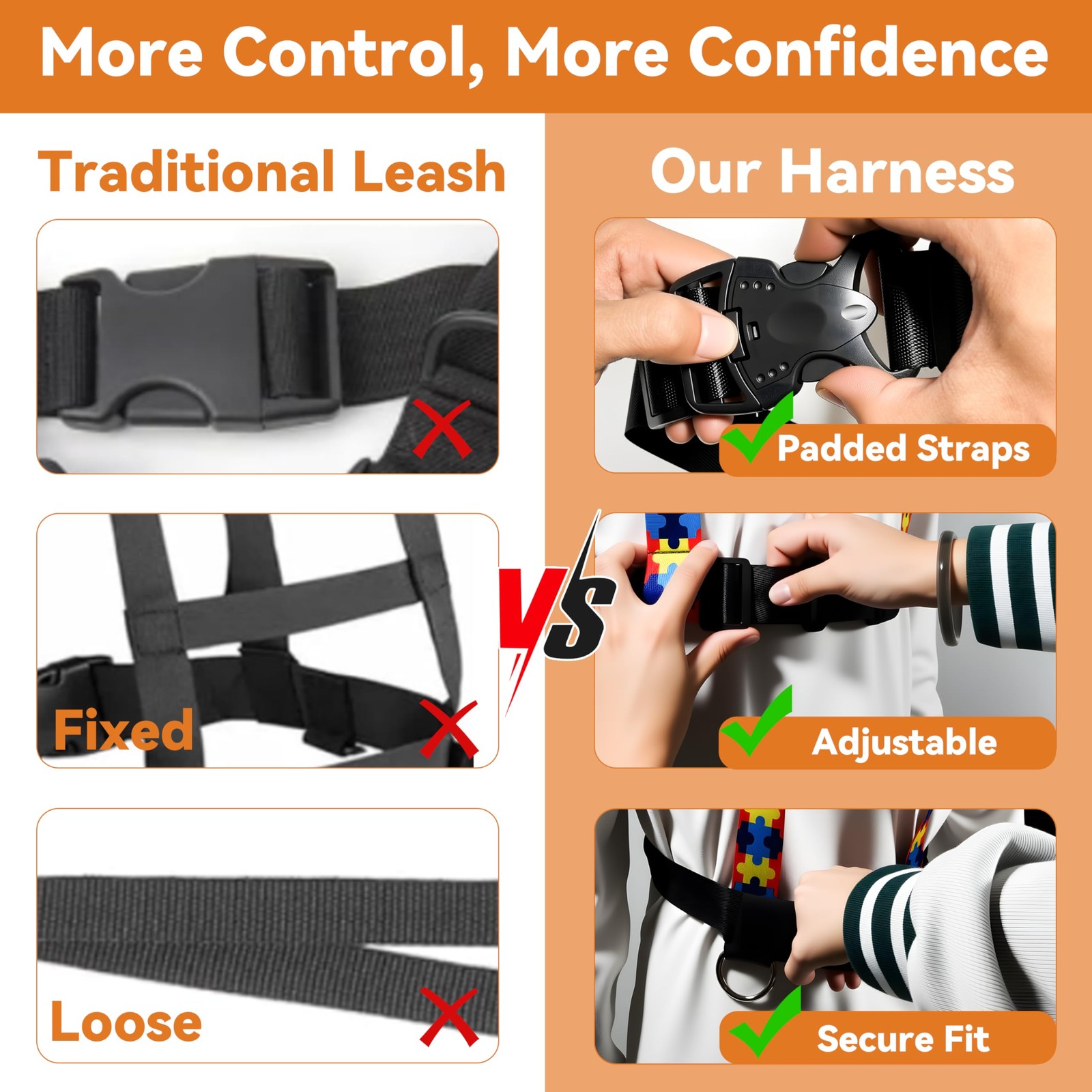 Walking Safety Harness for Older 3 12 Years, Adjustable Leash Vest for Specia...