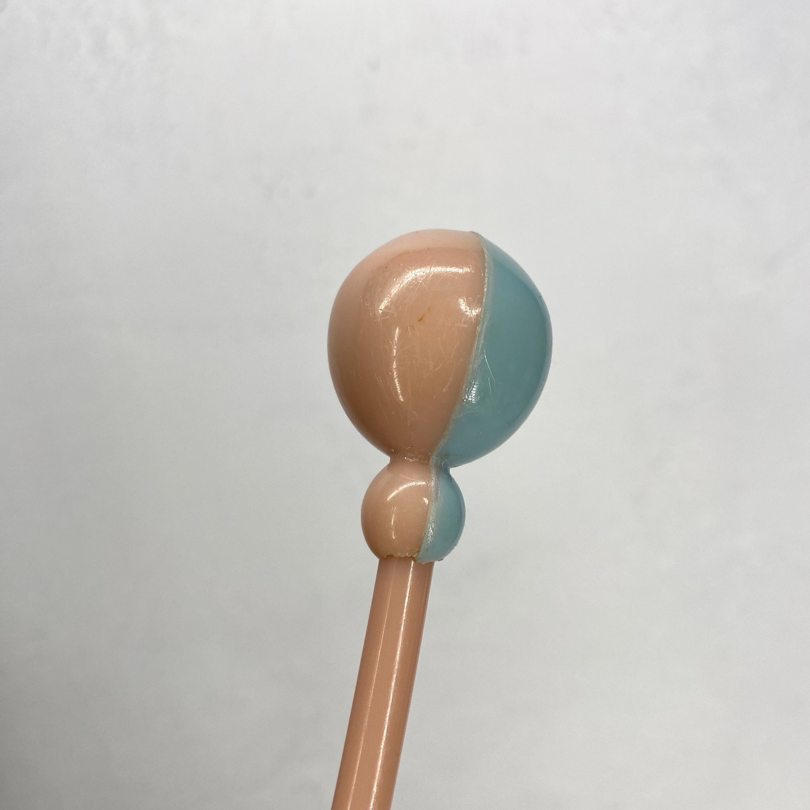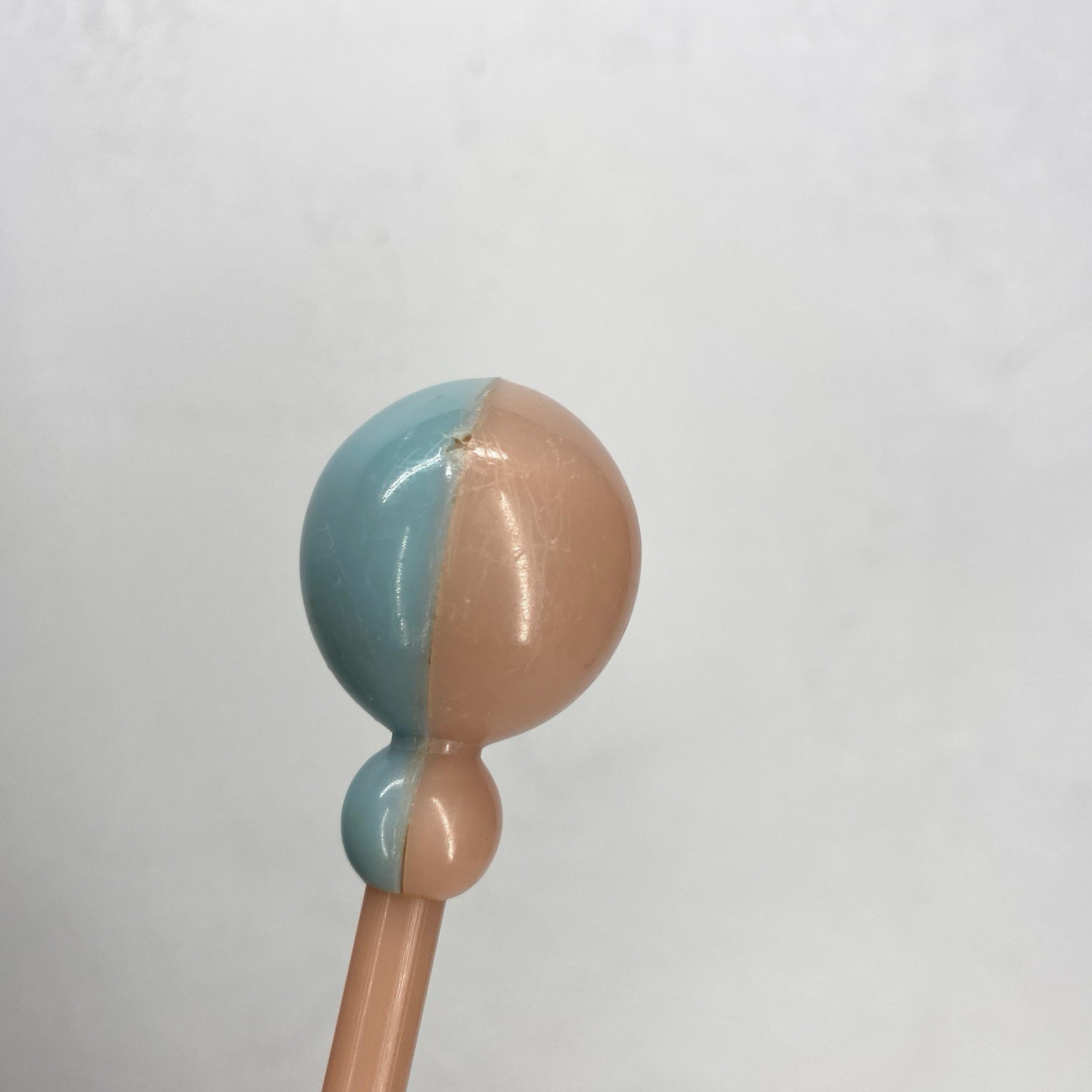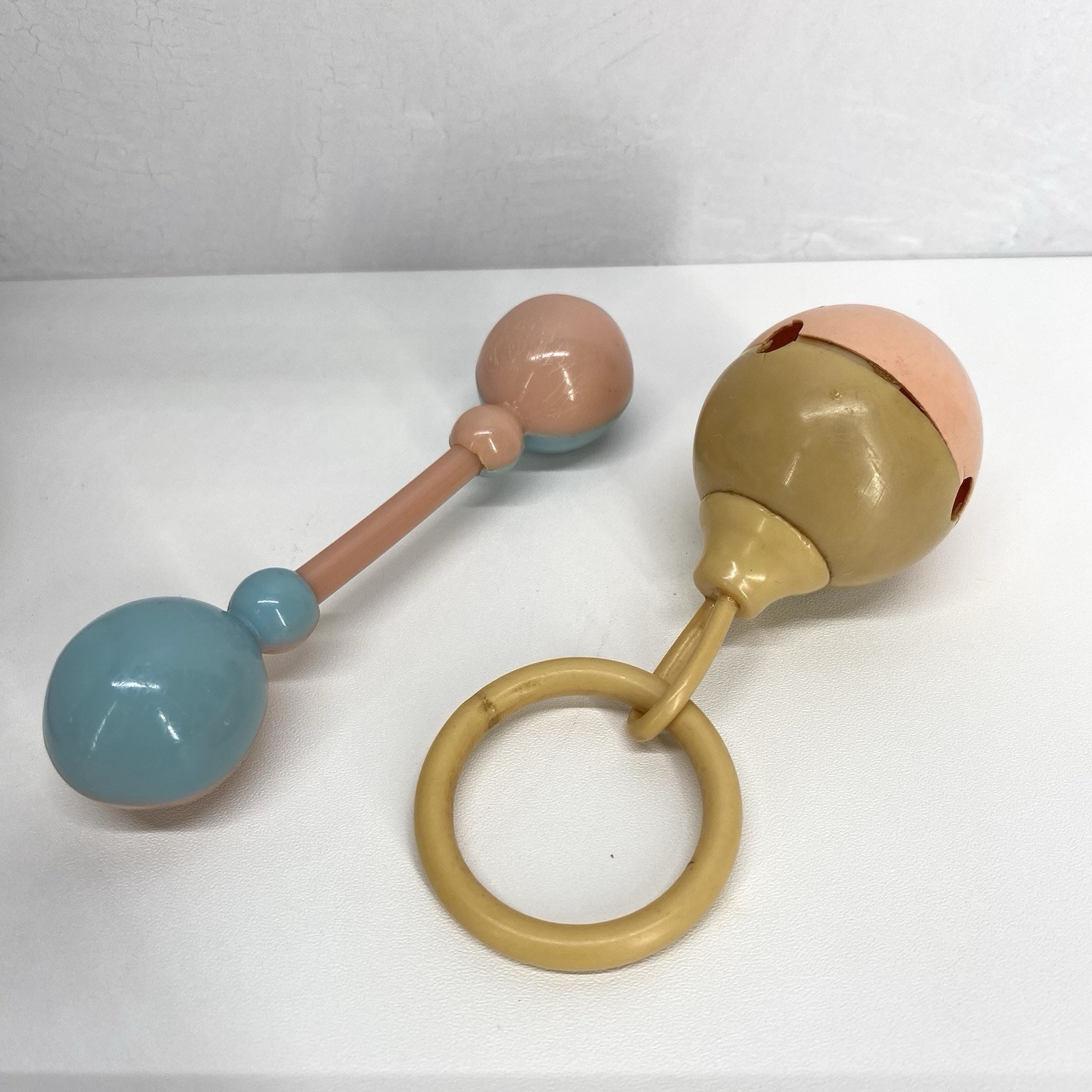 Antique 1930s Celluloid Baby Rattle Set Of 2 Pink And Blue Vintage Childrens Toy