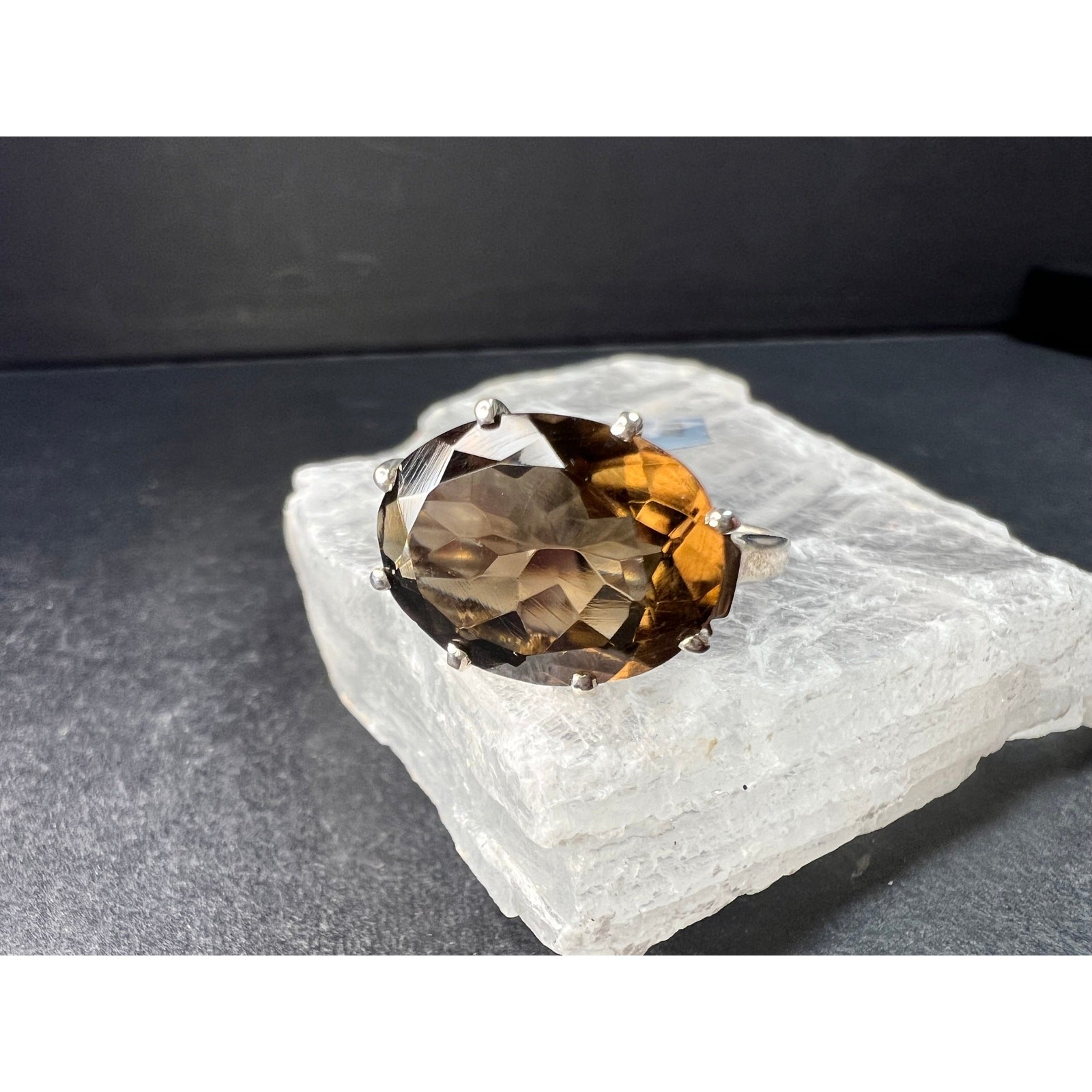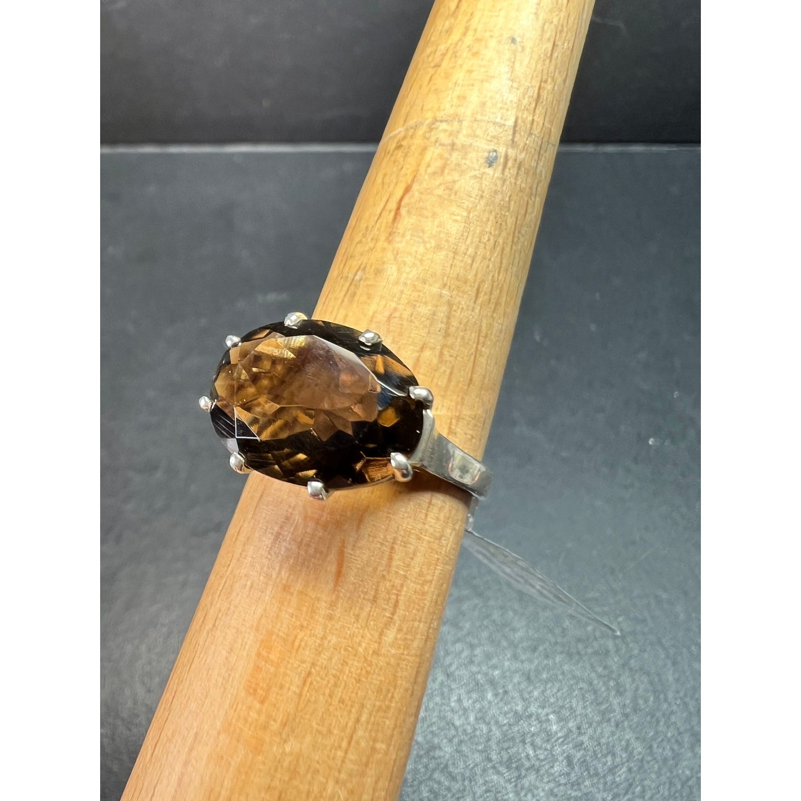 Smoky Quartz 925 Sterling Silver Statement Ring Size 9