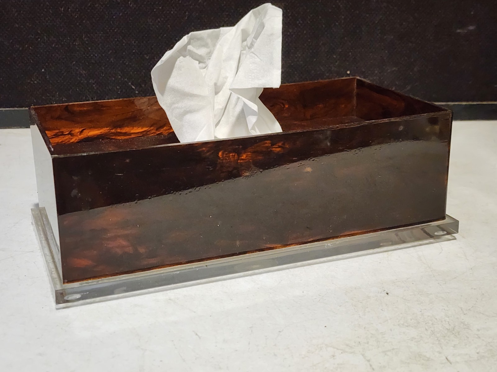 как выглядит Vintage L R Enterprises Faux Tortoise Shell Lucite LONG TISSUE BOX HOLDER фото