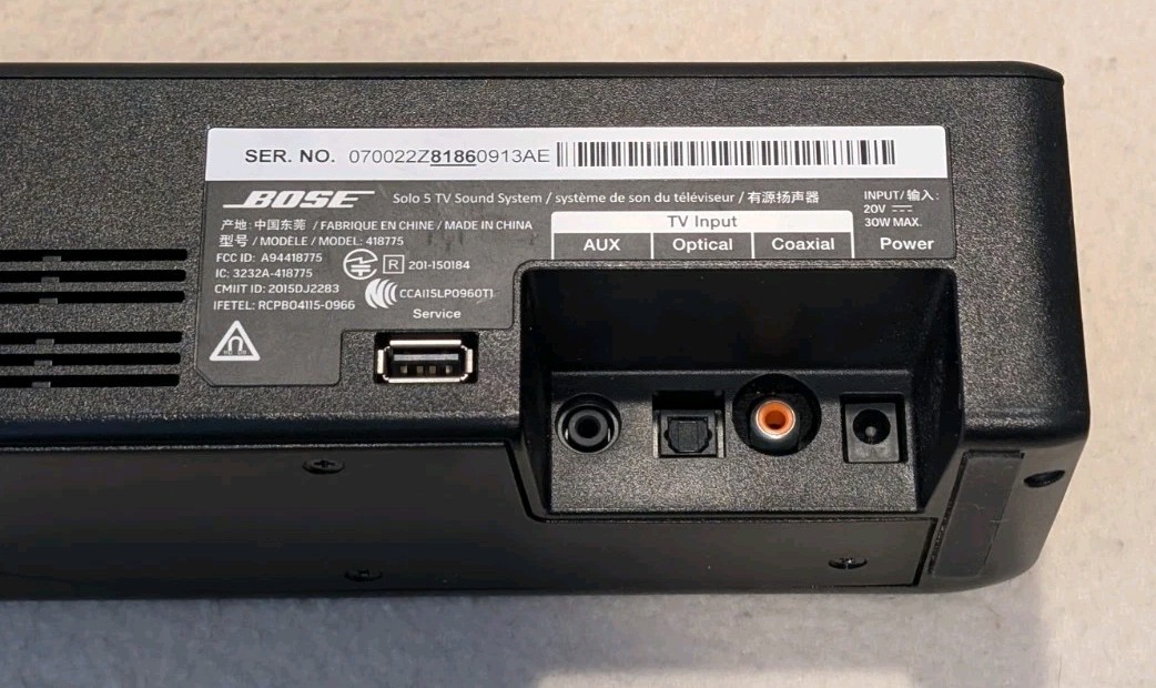 Bose Solo 5 TV Sound System Soundbar Model 418775 With Power Cord Remote