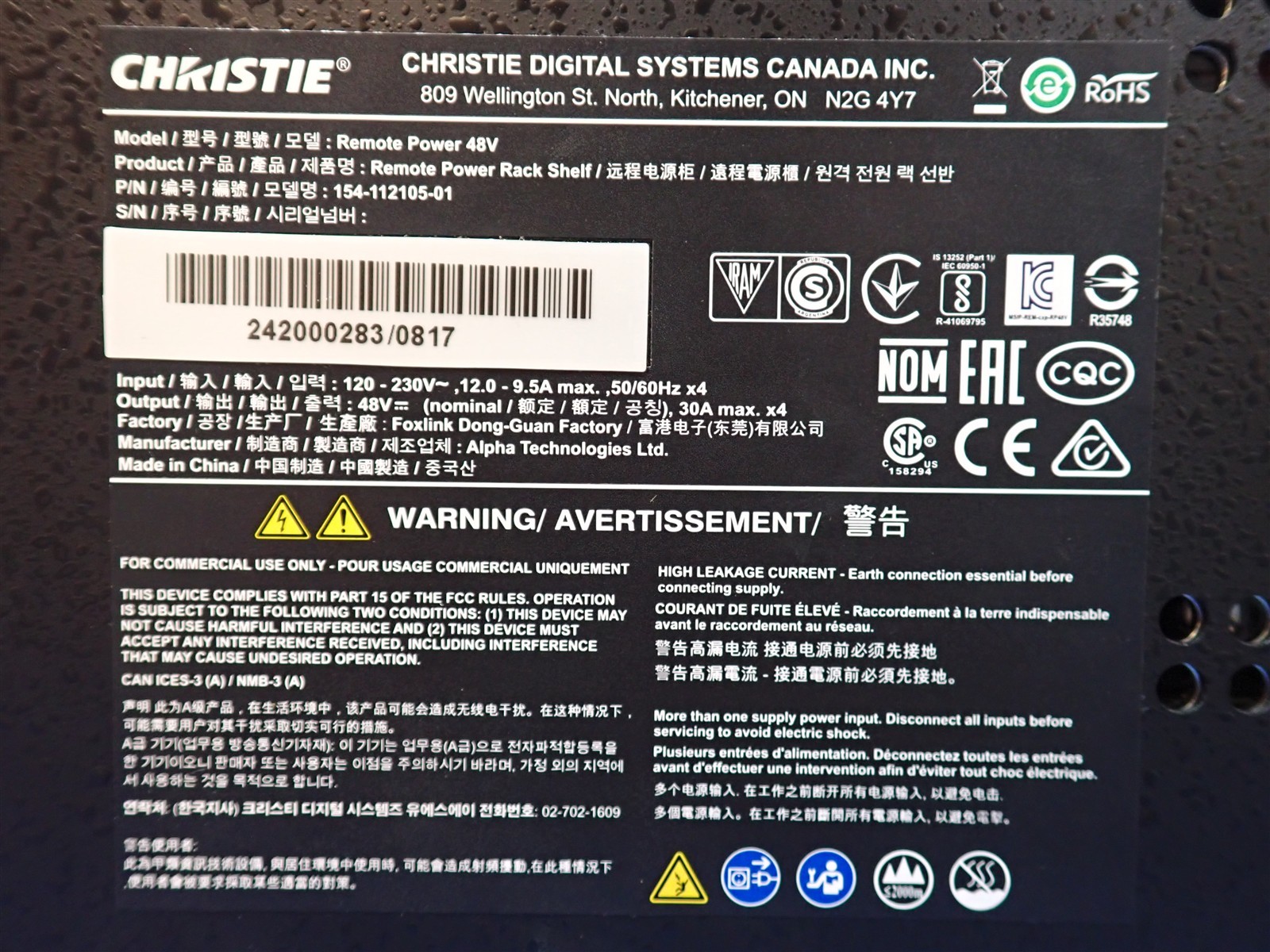 Christie 154-112105-01 48V Remote Power Rack Shelf M16