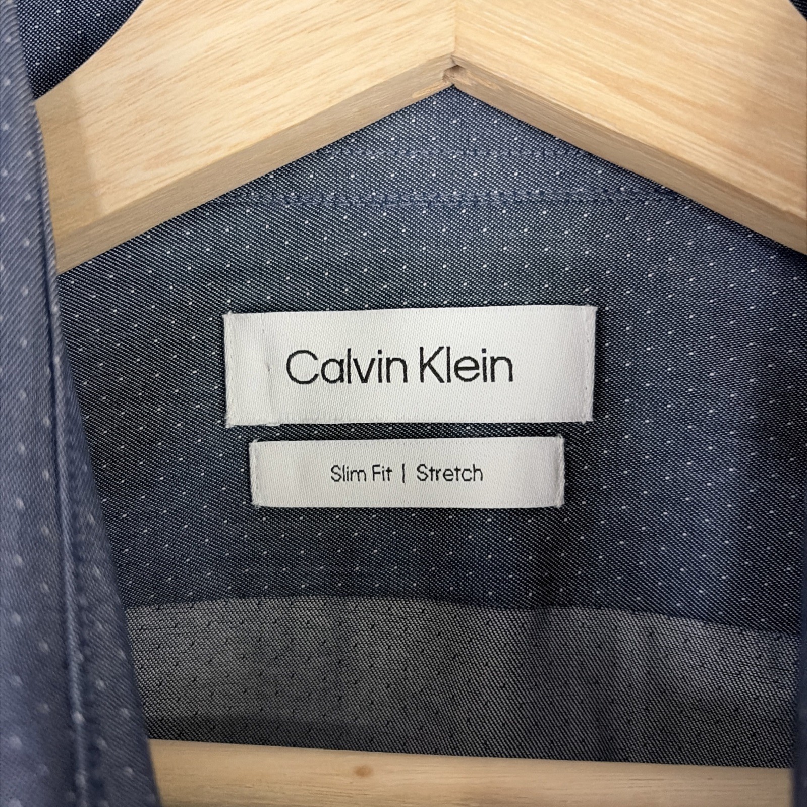 Calvin Klein Button Up Dress Shirt Slim Fit Stretch 15 1/2 Dusk Blue 32/33 NWT