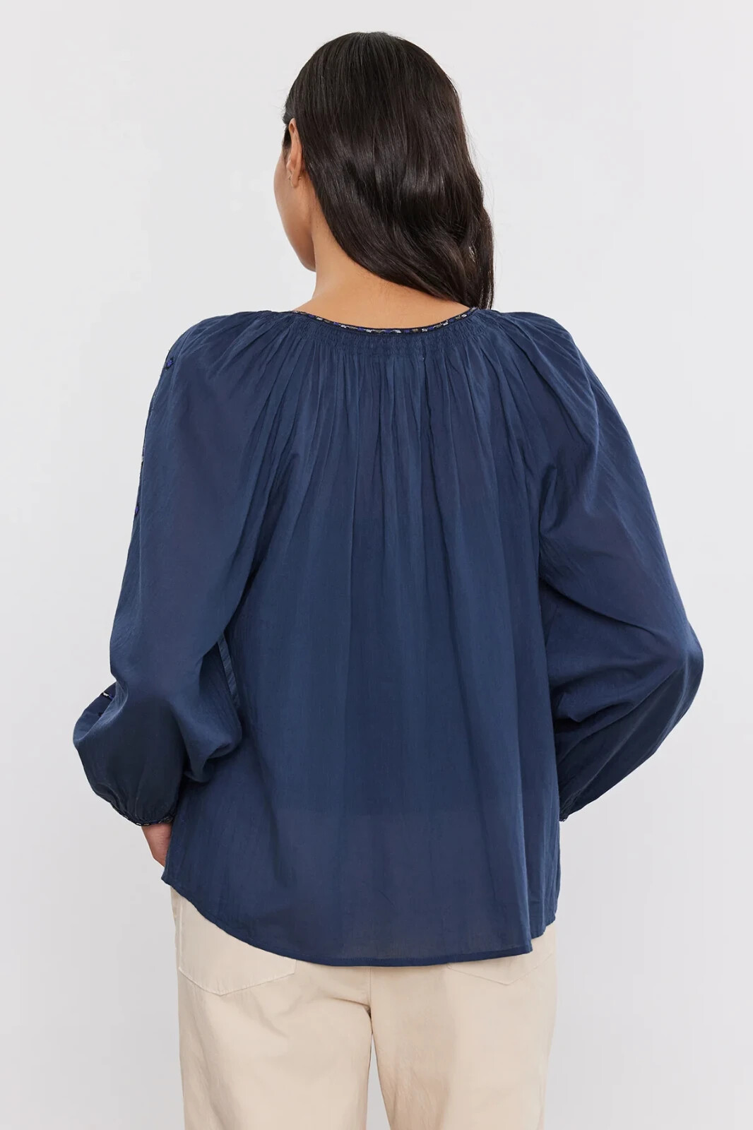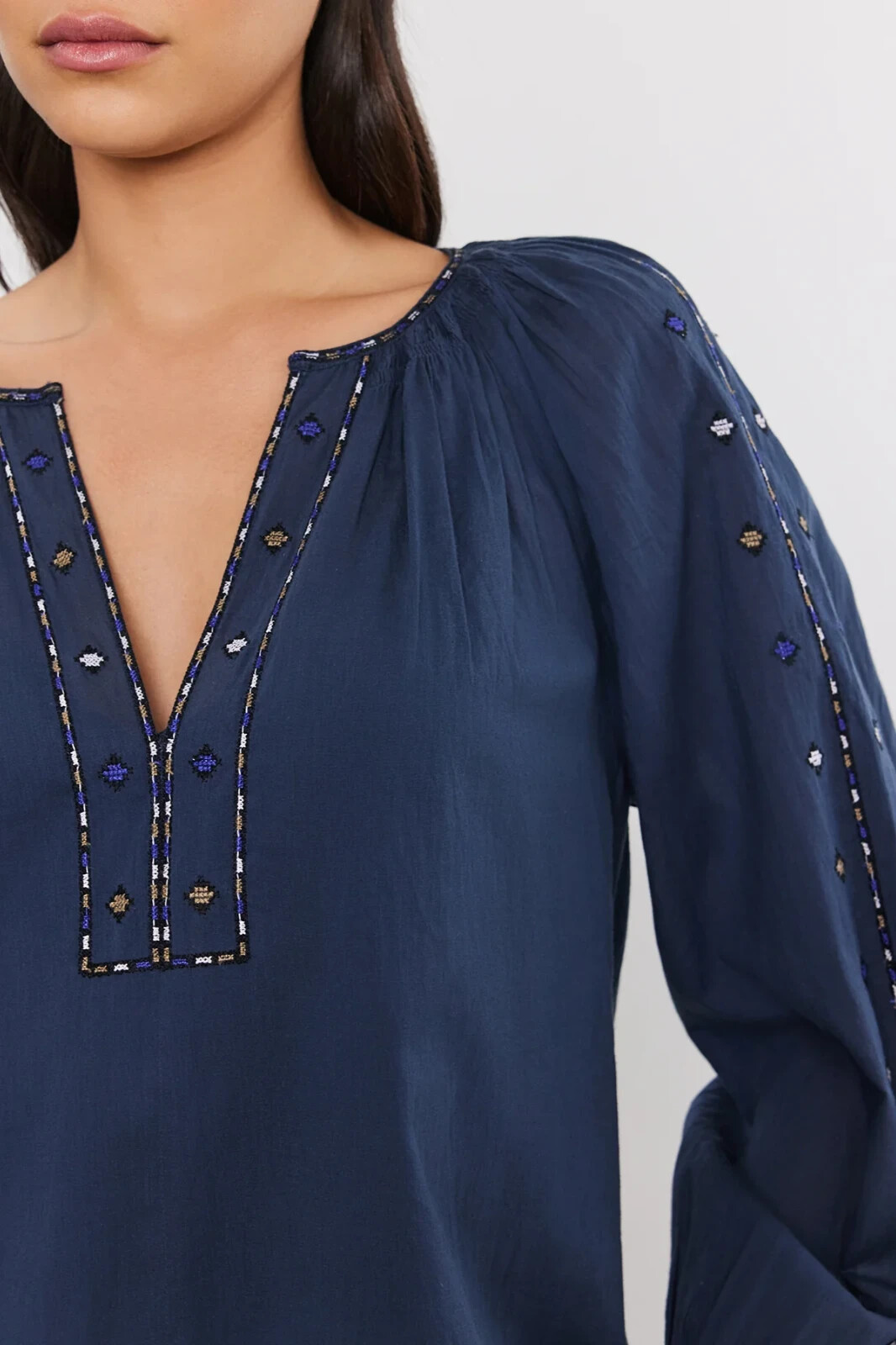 VELVET By Graham Spencer Tina Embroidered Top Navy S 198 H2