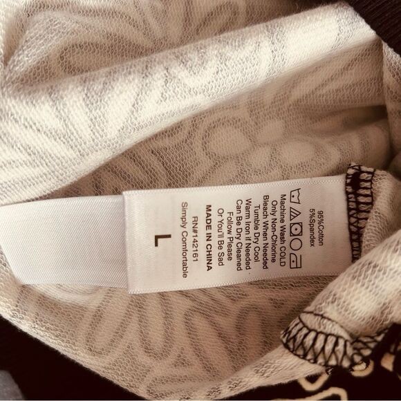 LuLaRoe Hannah Crewneck Sweatshirt Black and off white. Size L