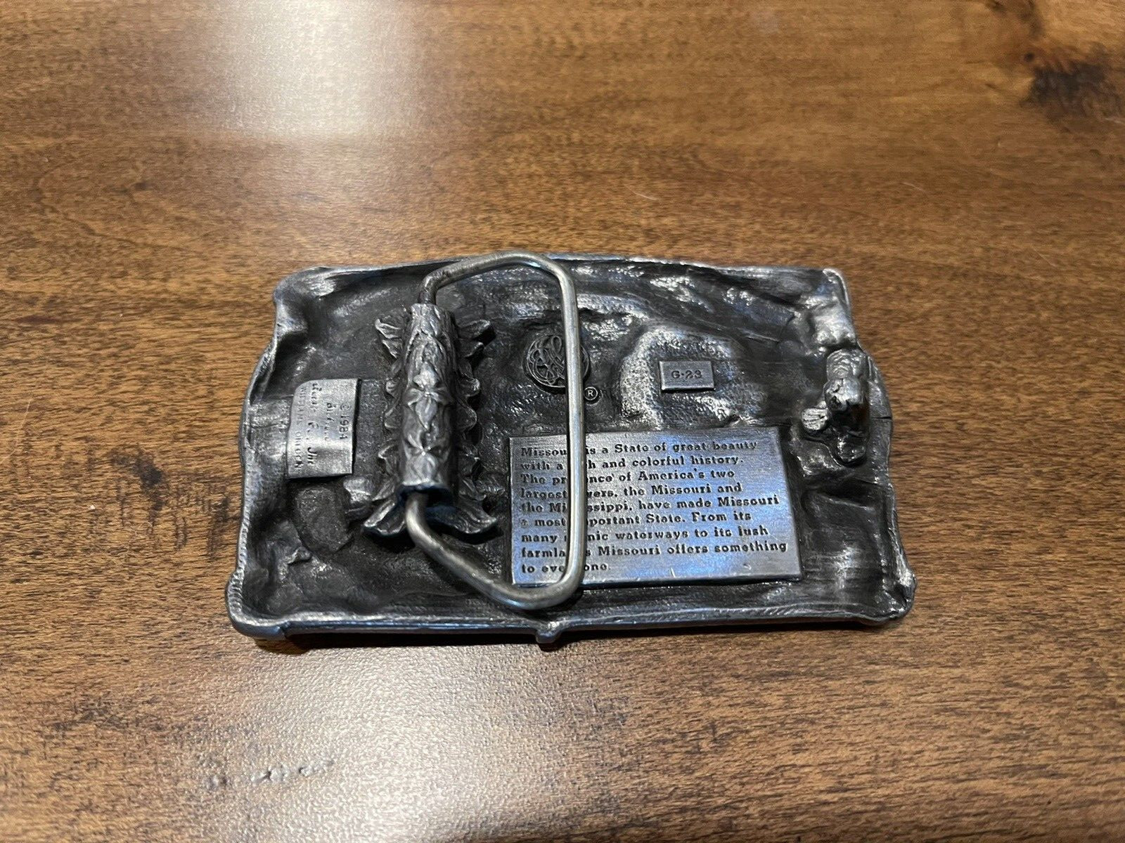 как выглядит Vintage 1984 Missouri State Steam River Boat Deer Siskiyou Pewter Belt Buckle фото