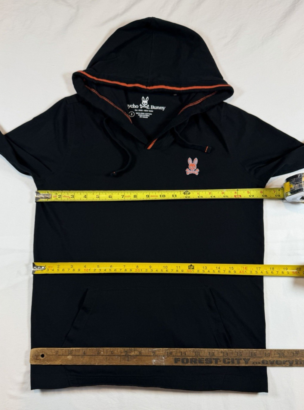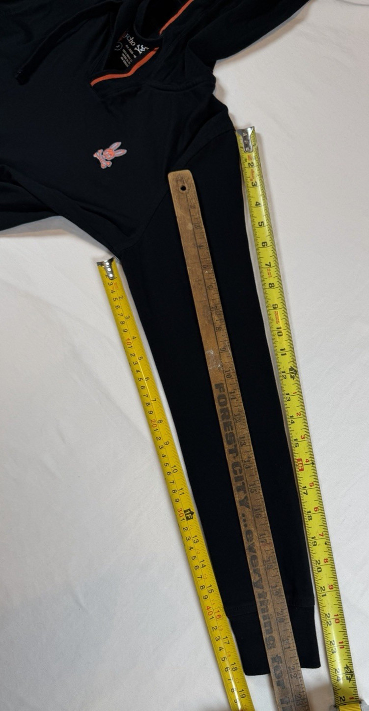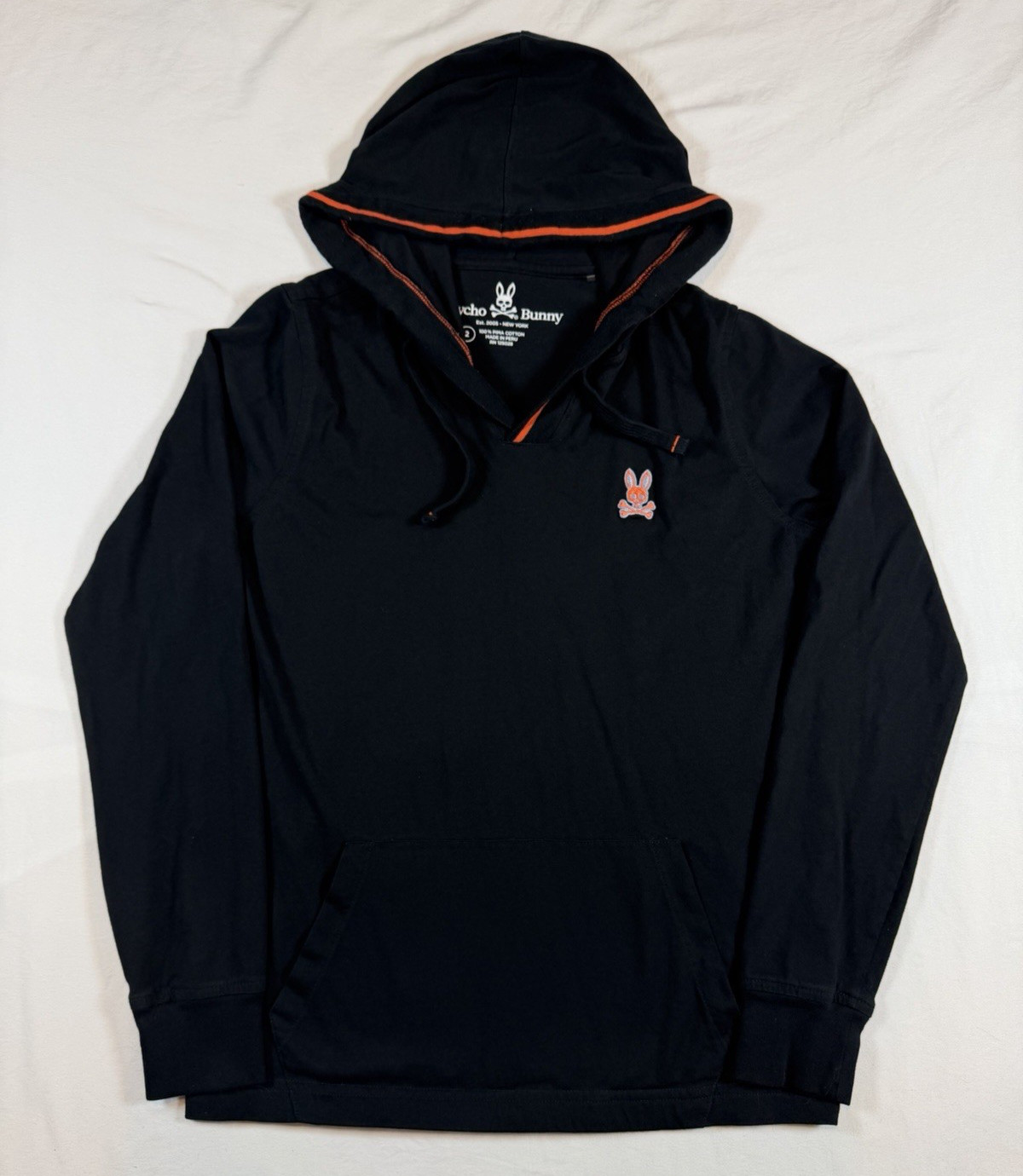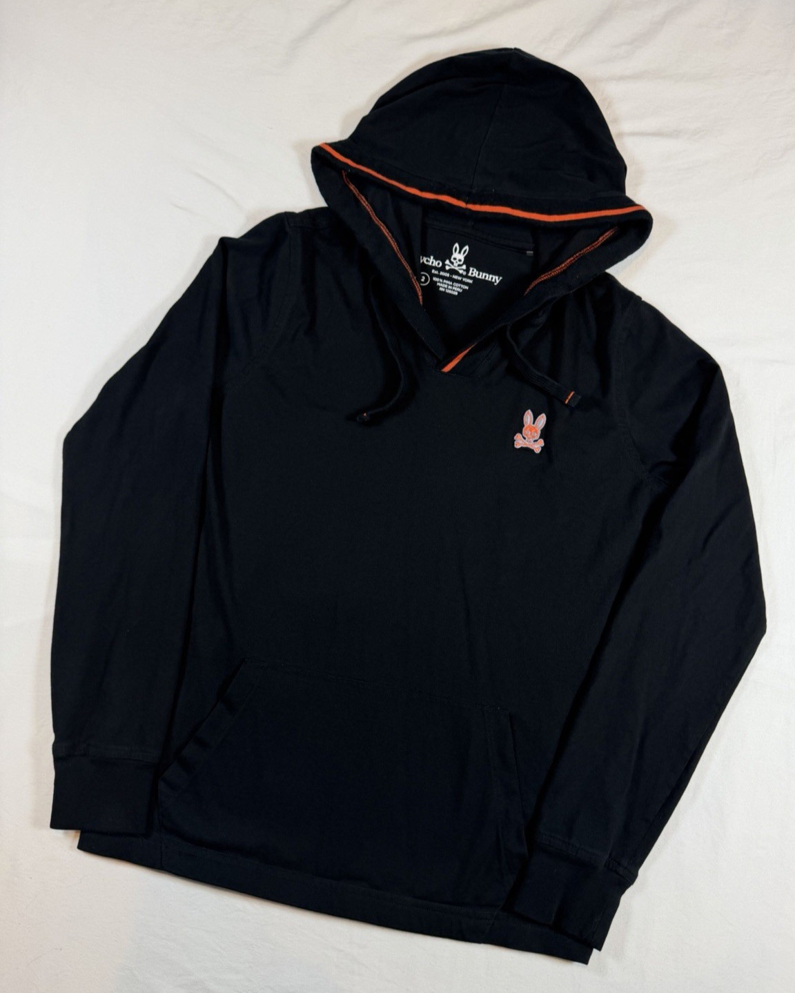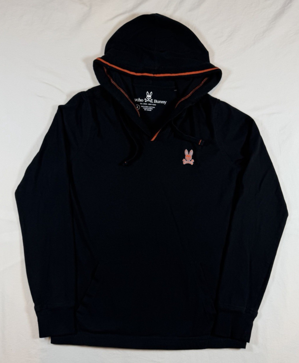 Womens 2 Hoodie Psycho Bunny Hood Sweatshirt Black Long Sleeve Shirt Orange Logo