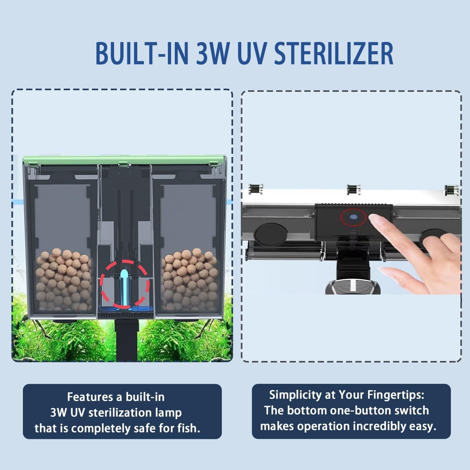 Aquarium Filter Hang on Fish Tank Filters Adjustable Ultra-Quiet Powerful U-V...