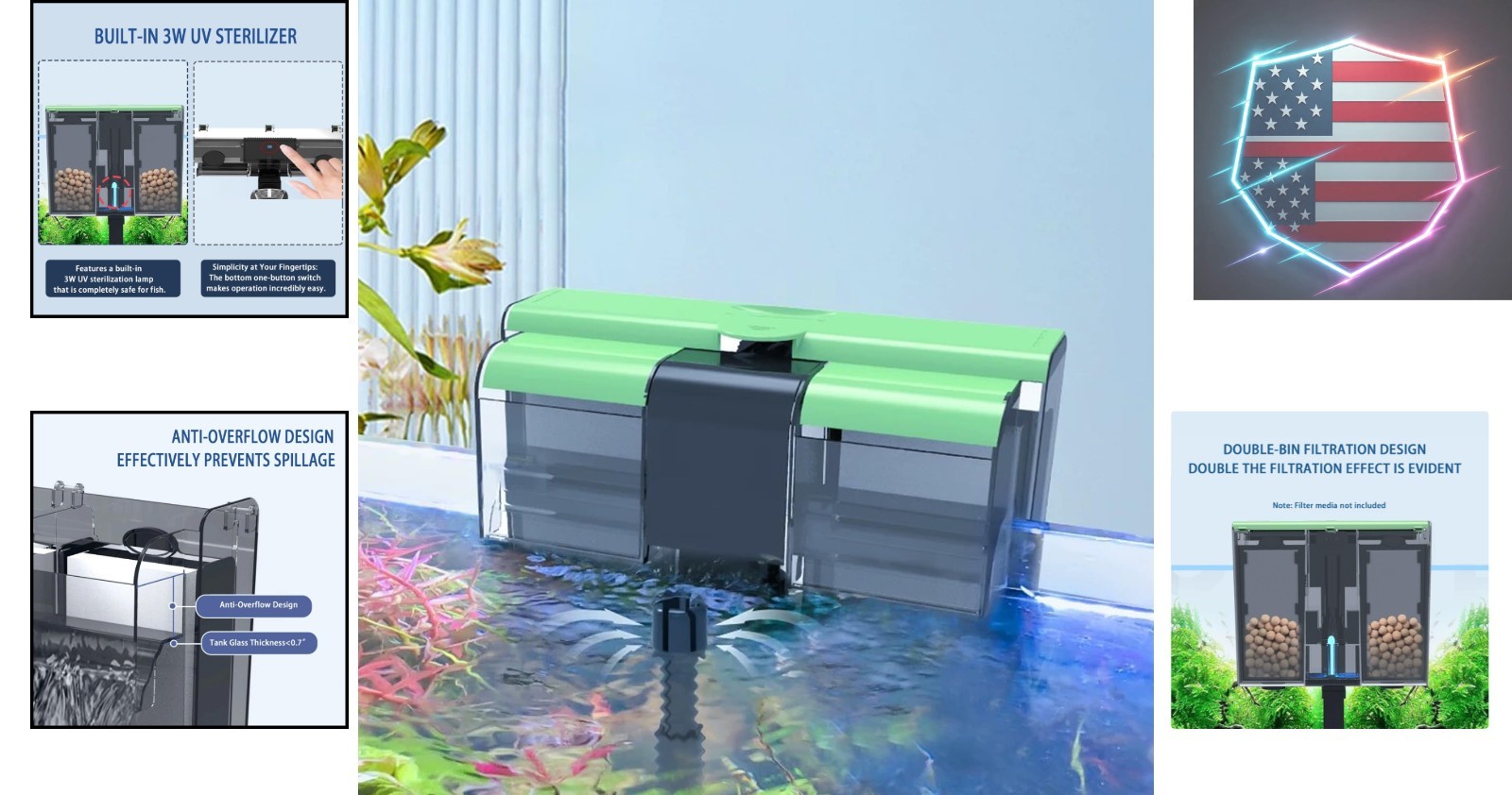 как выглядит Aquarium Filter Hang on Fish Tank Filters Adjustable Ultra-Quiet Powerful U-V... фото