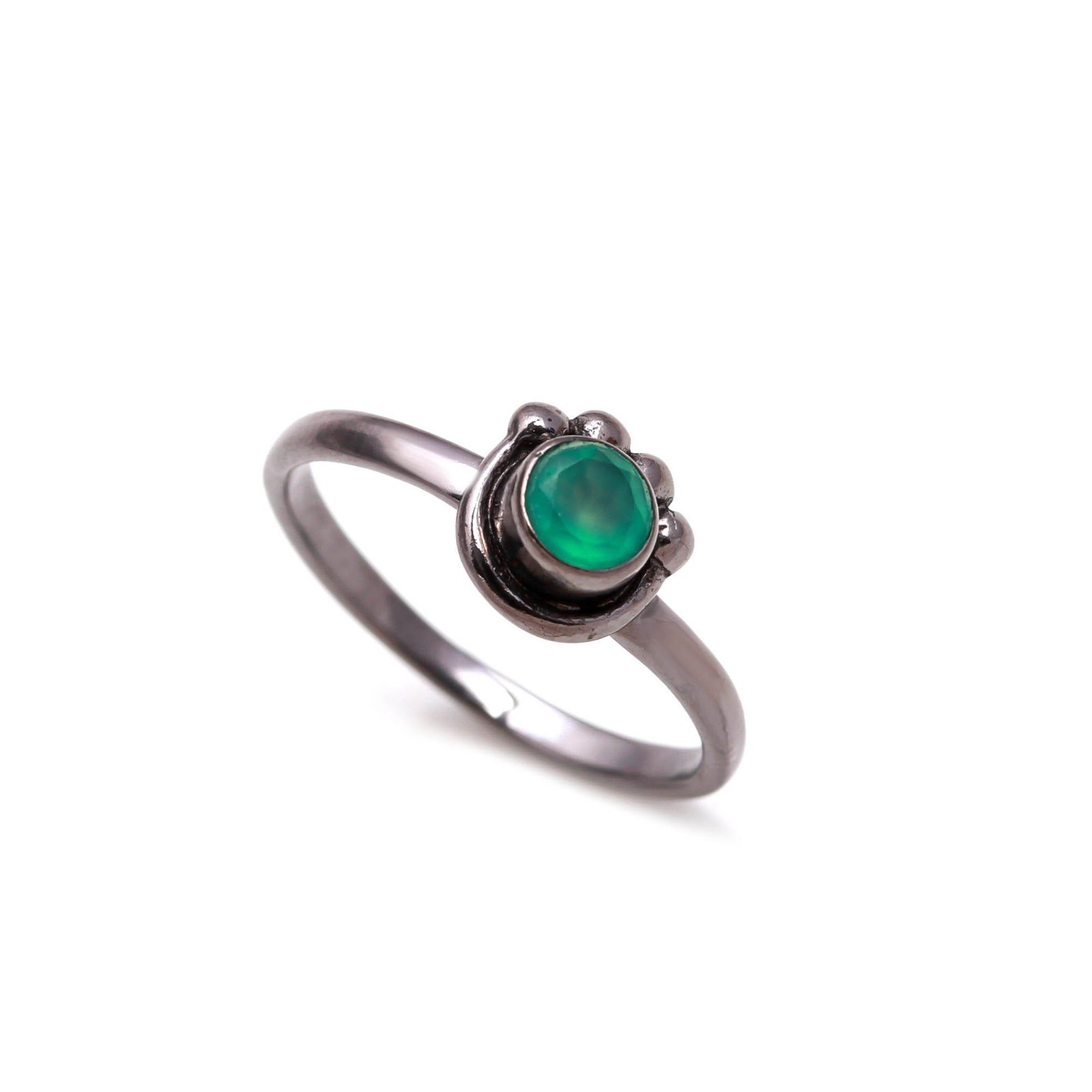 Natural Green Onyx Round Shape Ring Oxidized Sterling Silver Minimalist Jewelry