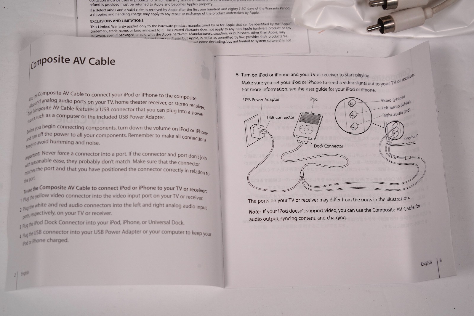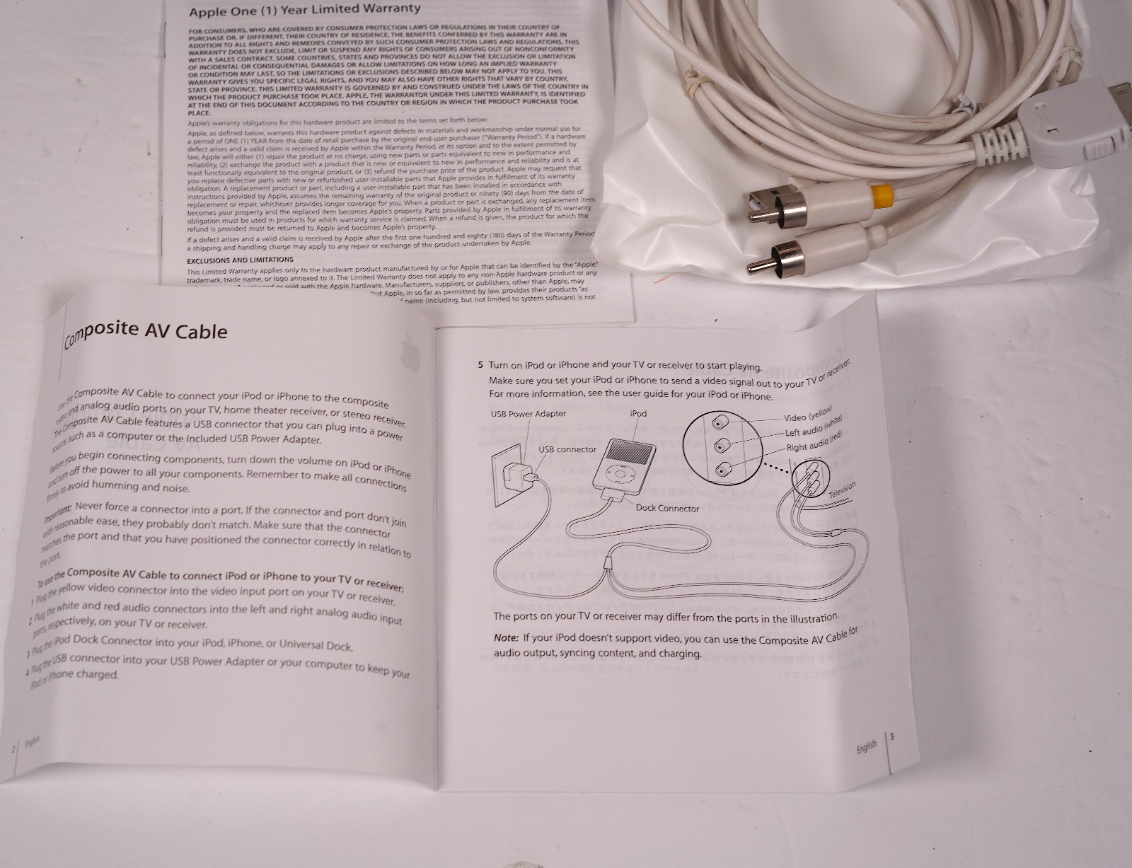 Apple, Genuine Composite AV Cable In Original Box MB129LL/A