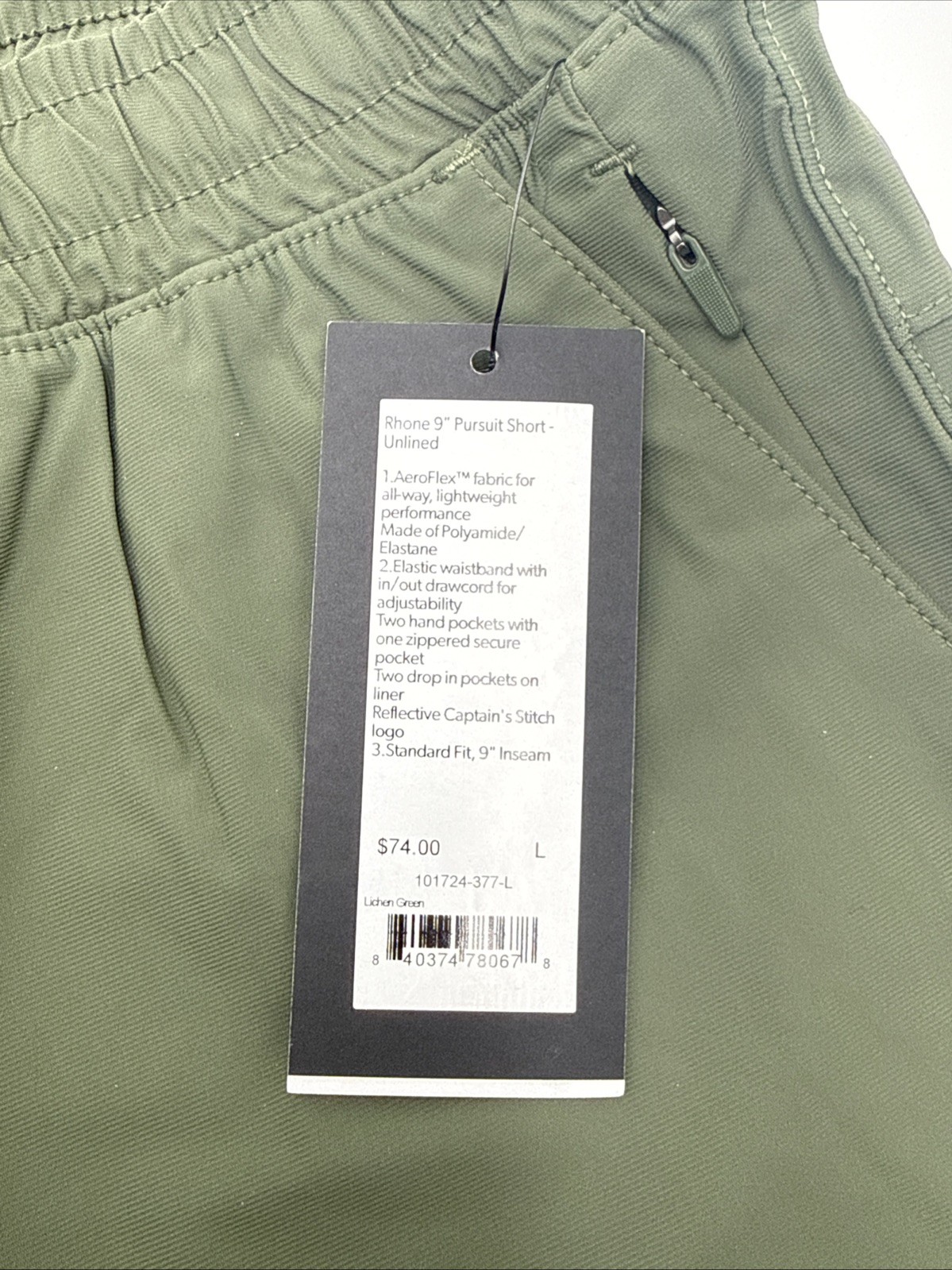 74 RHONE Men's Unlined Pursuit Shorts 9 - Lichen Green - Large -New With Tag
