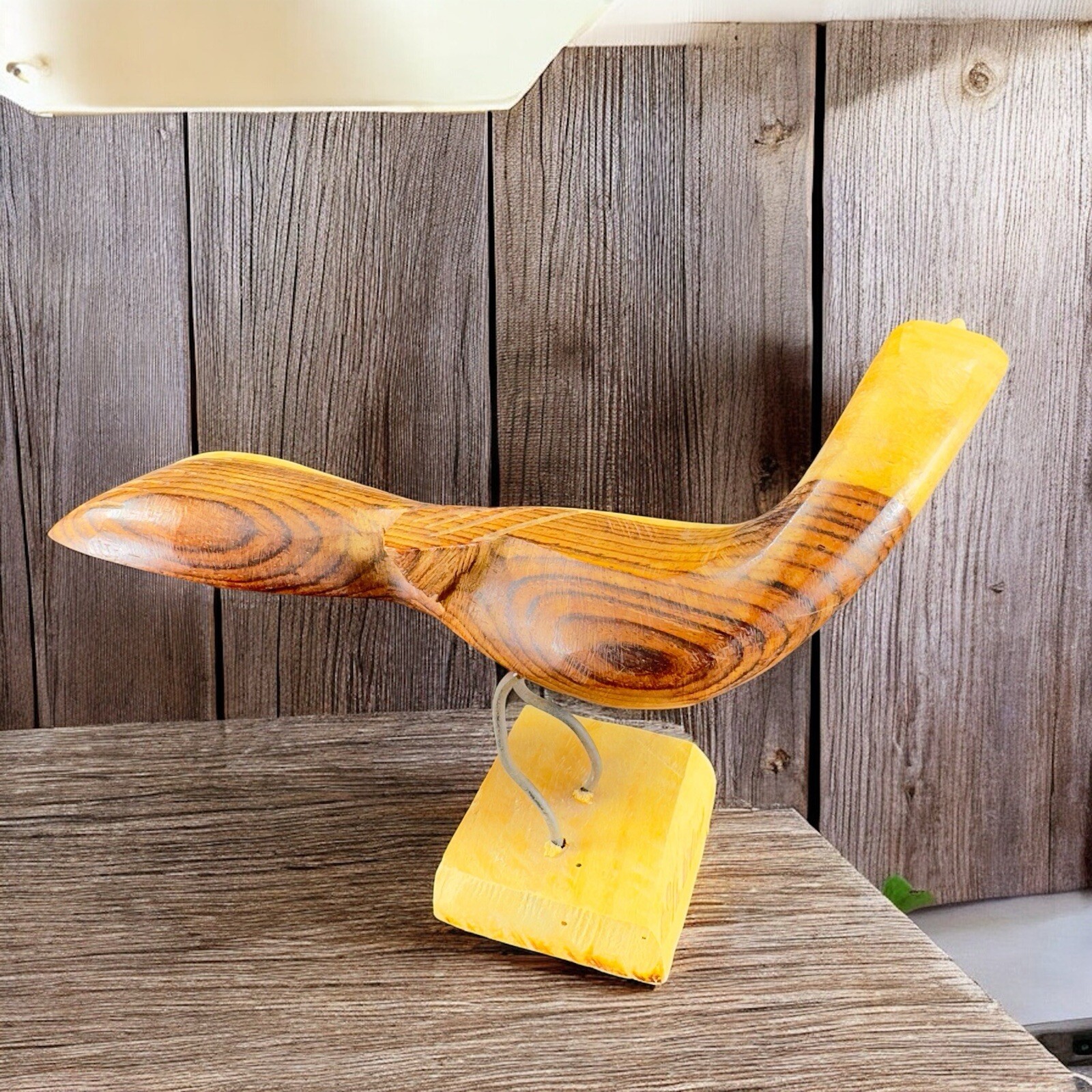 Vintage Hand Carved Wood Bird Figurine Decor Hand Made Folk Art Figure VTG