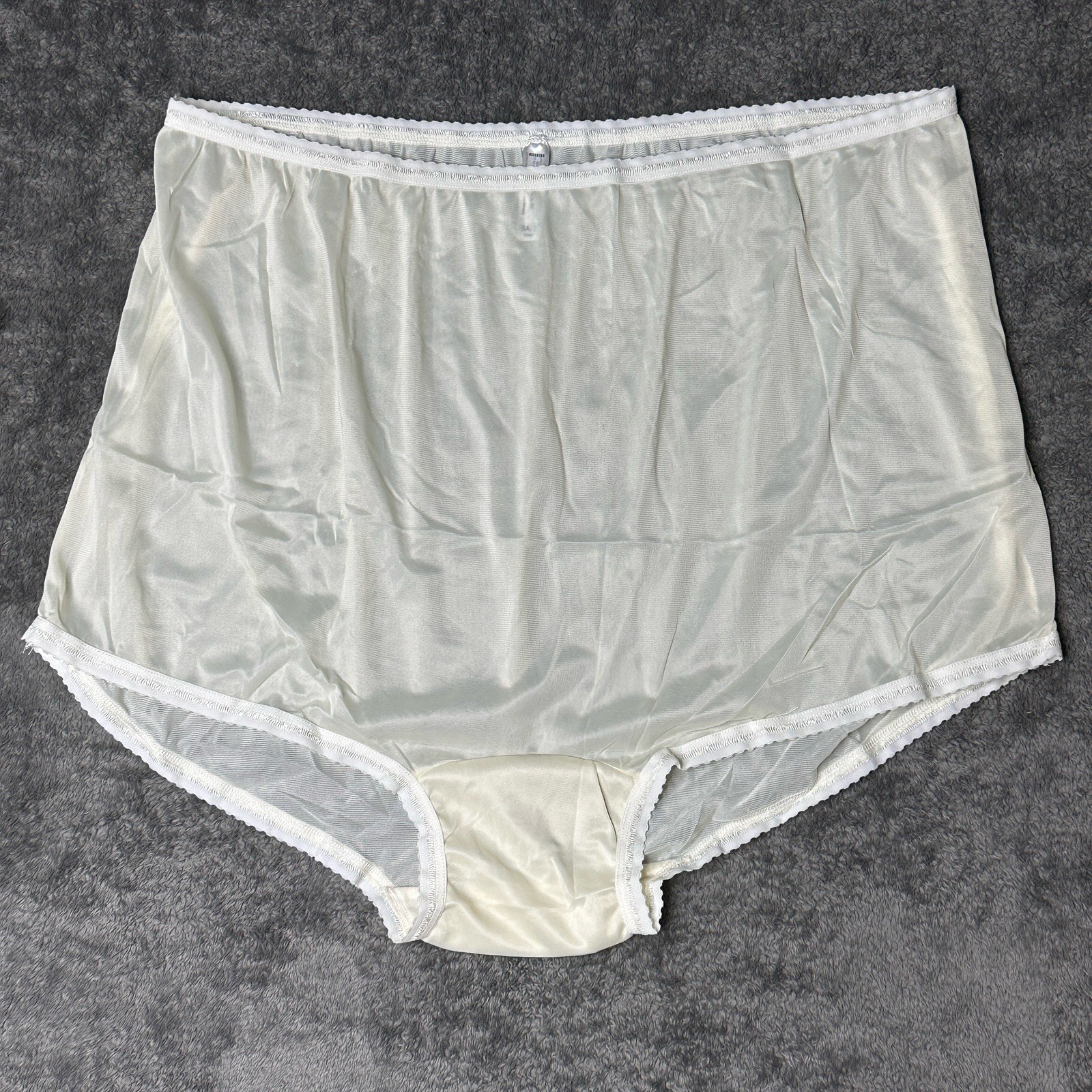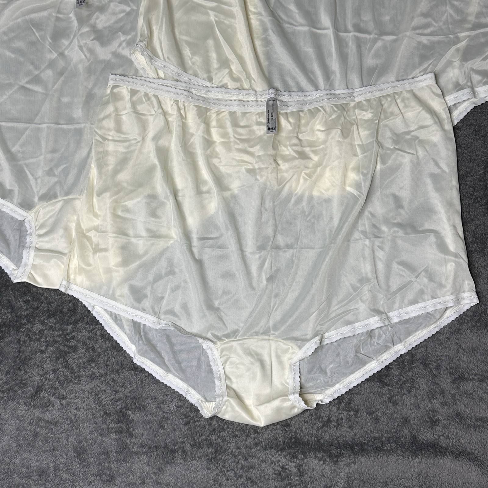 3 PAIR Bali Vintage Full Cut Silky Nylon Panties Ivory Briefs 23467 Size 14 NEW