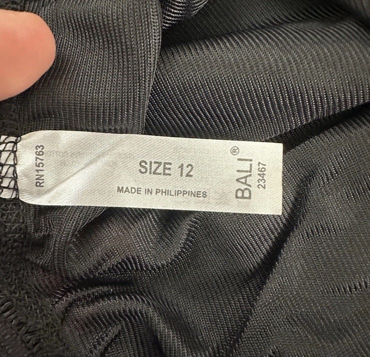 3 PAIR Bali Vintage Full Cut Black Silky Nylon Panties Briefs 23467 Size 12 NEW