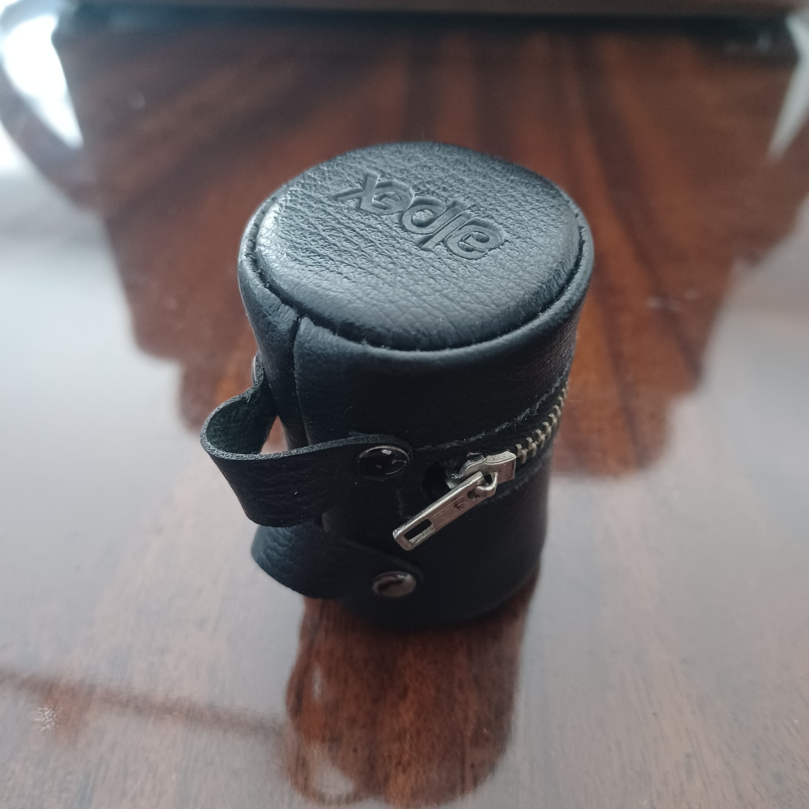 как выглядит VINTAGE Alpex 35mm Film Roll Black Faux Leather Holder Canister Zip Case Japan фото