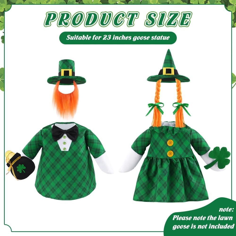 как выглядит 2 Sets St. Patricks Day Goose Outfits Porch Green Plaid Goose Costume Lucky Iri фото