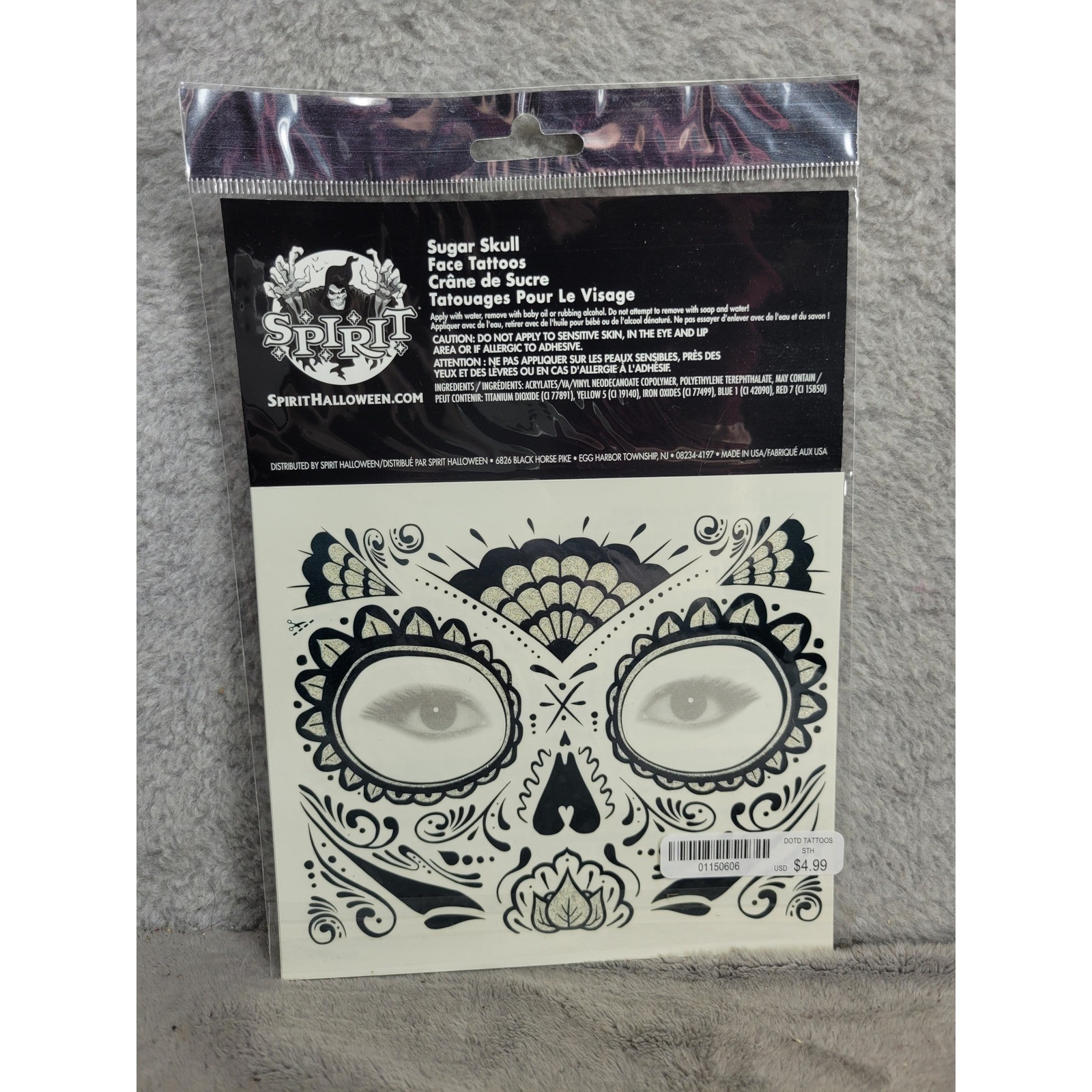 Spirit Halloween Sugar Skull Glitter Face Tattoos Day of the Dead Makeup