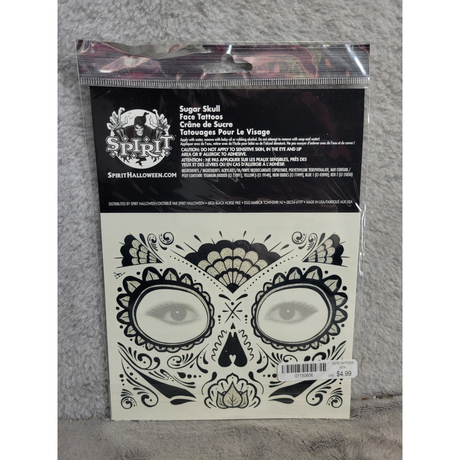 Spirit Halloween Sugar Skull Glitter Face Tattoos Day of the Dead Makeup
