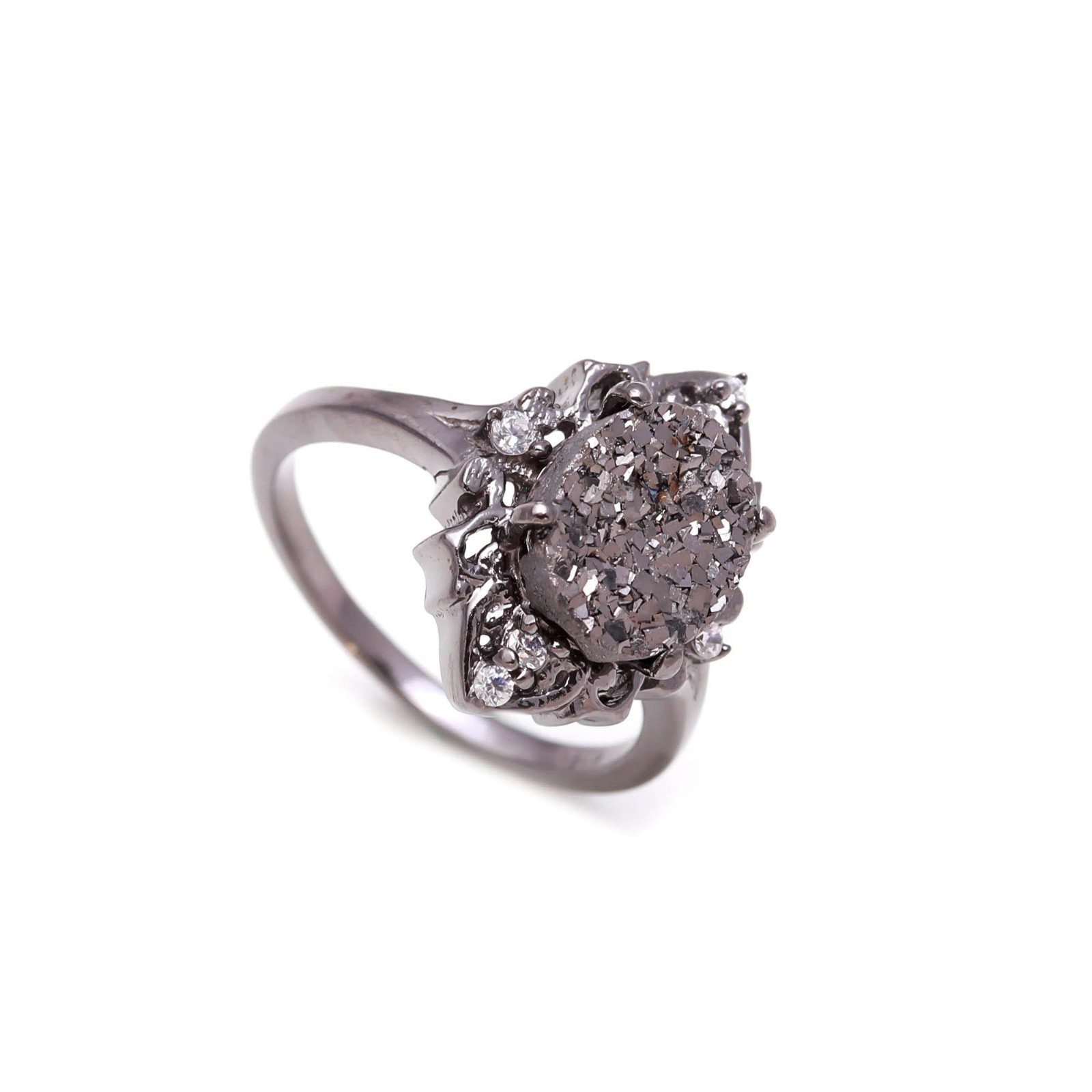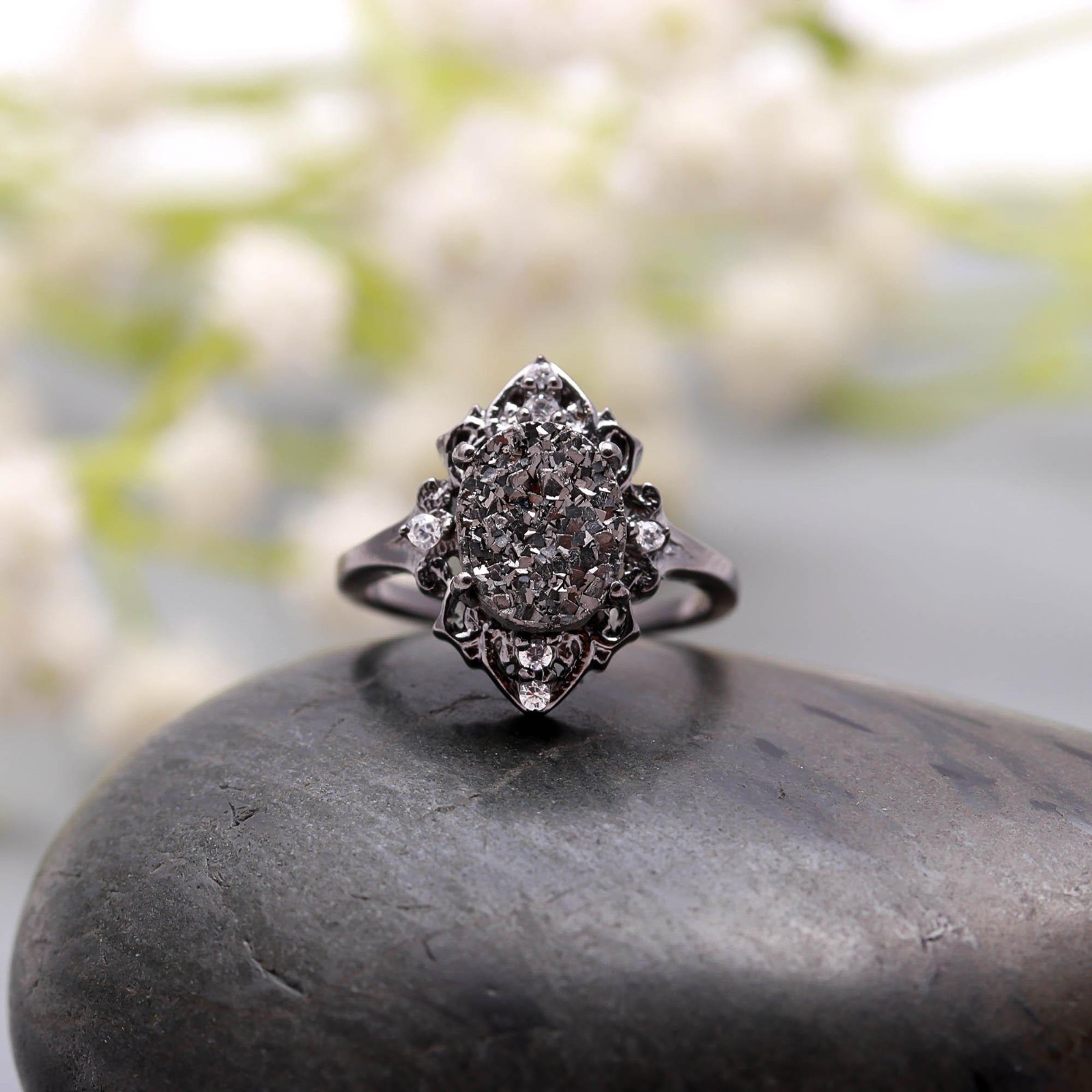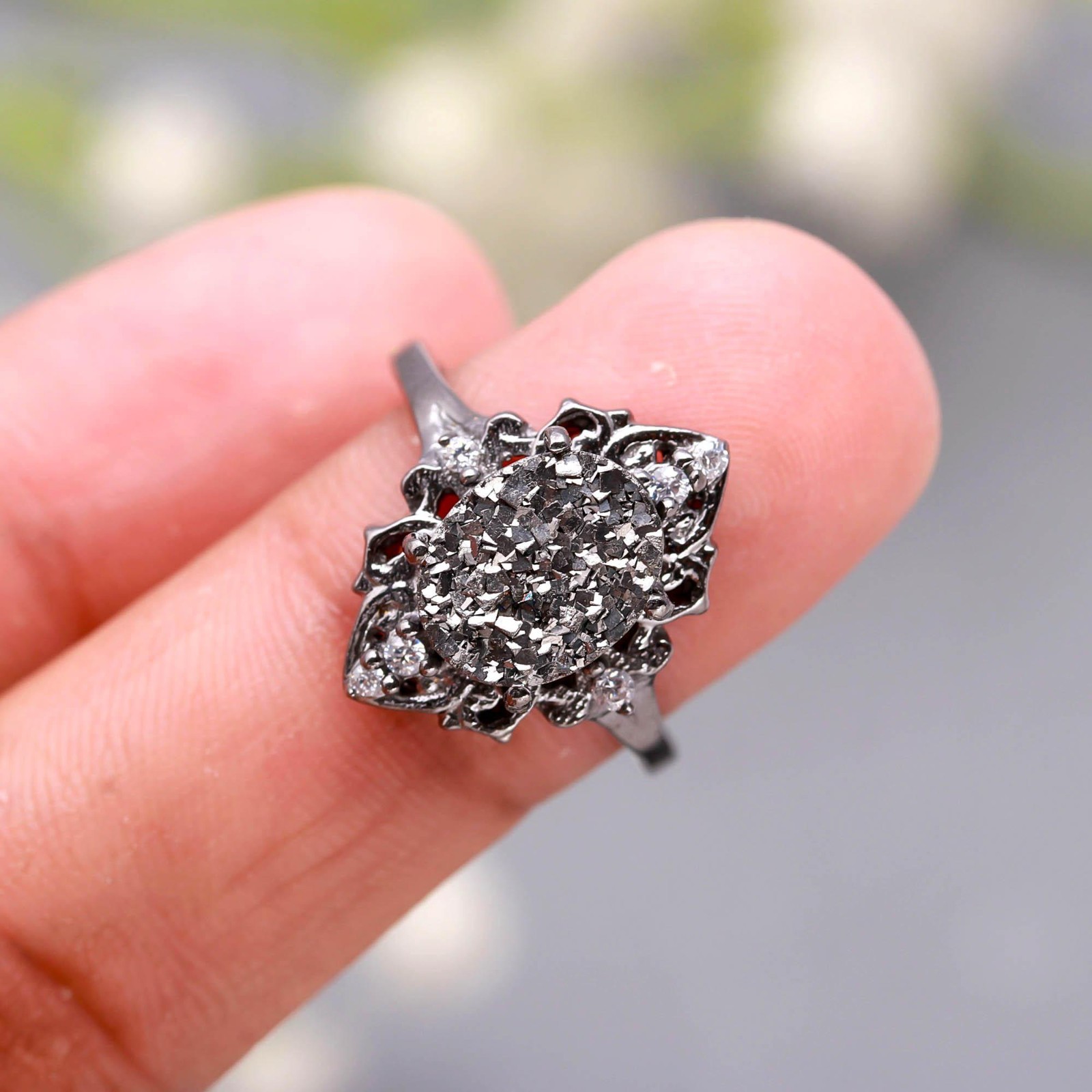 как выглядит Natural Pyrite Oval Shape Ring Black Oxidized 925 Sterling Silver Dainty Jewelry фото