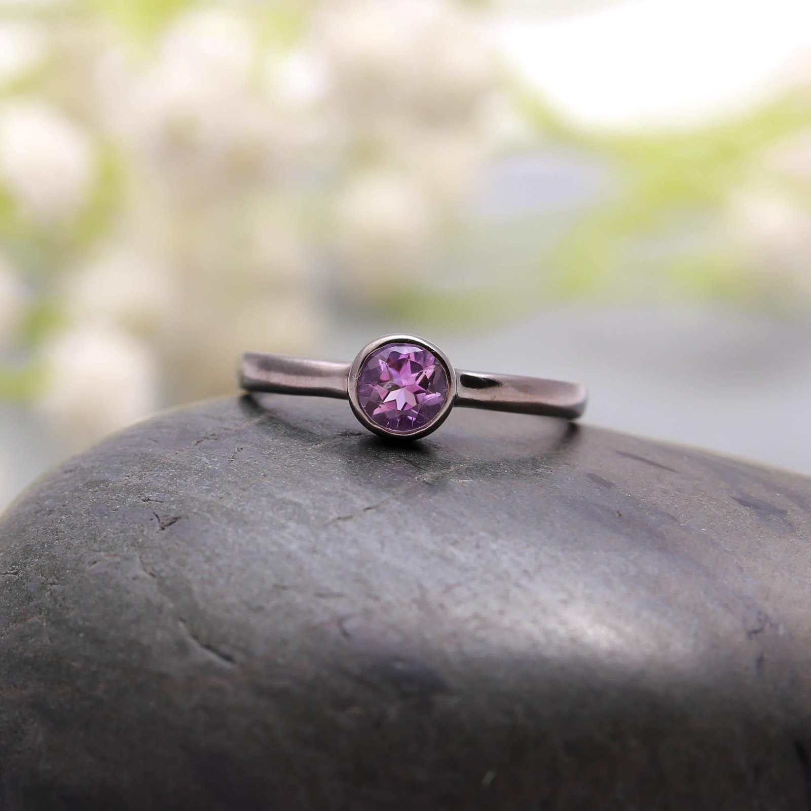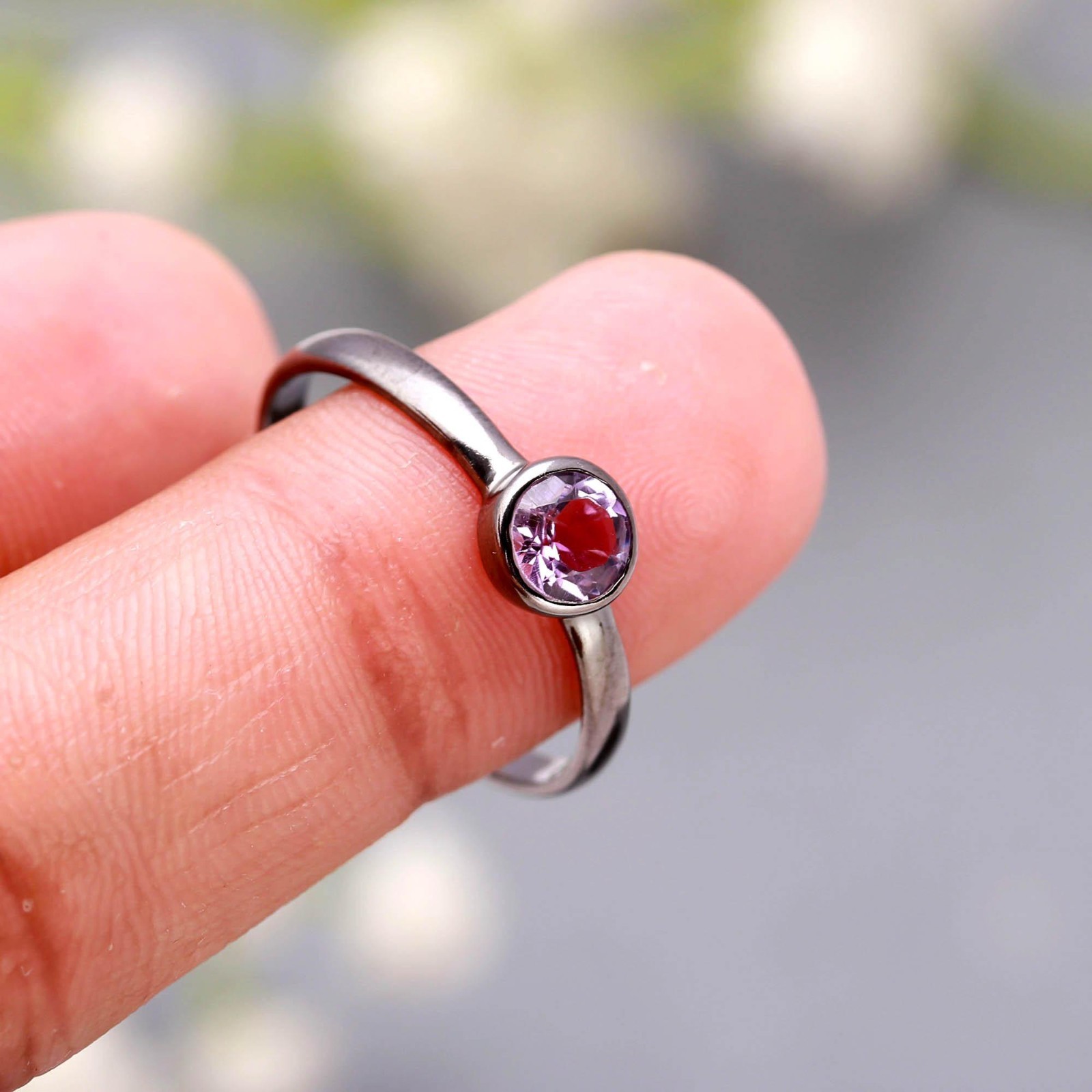 как выглядит Natural Purple Amethyst Round Shape Ring Oxidized Solid Silver Handmade Jewelry фото