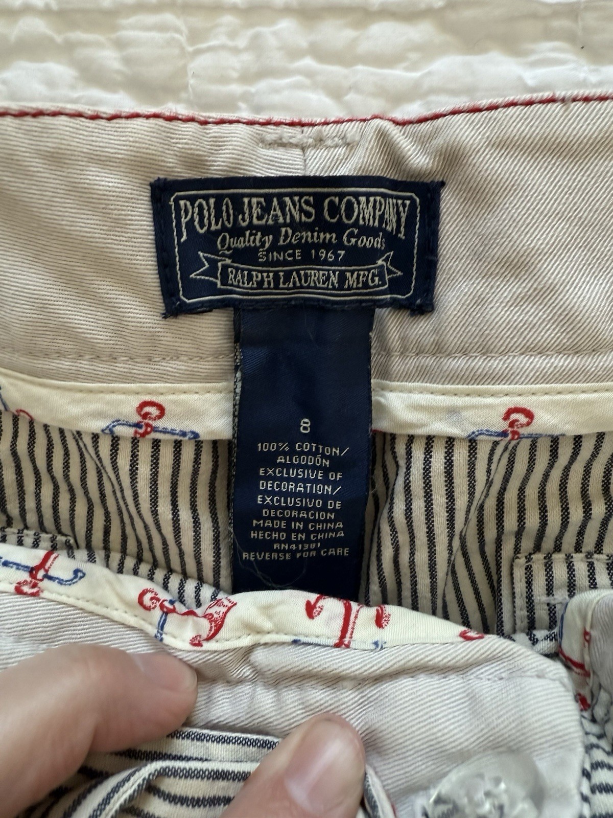 как выглядит Vintage Polo Jeans Co. Ralph Lauren Size 8 Cream/Gray Striped Chino Hot Shorts фото
