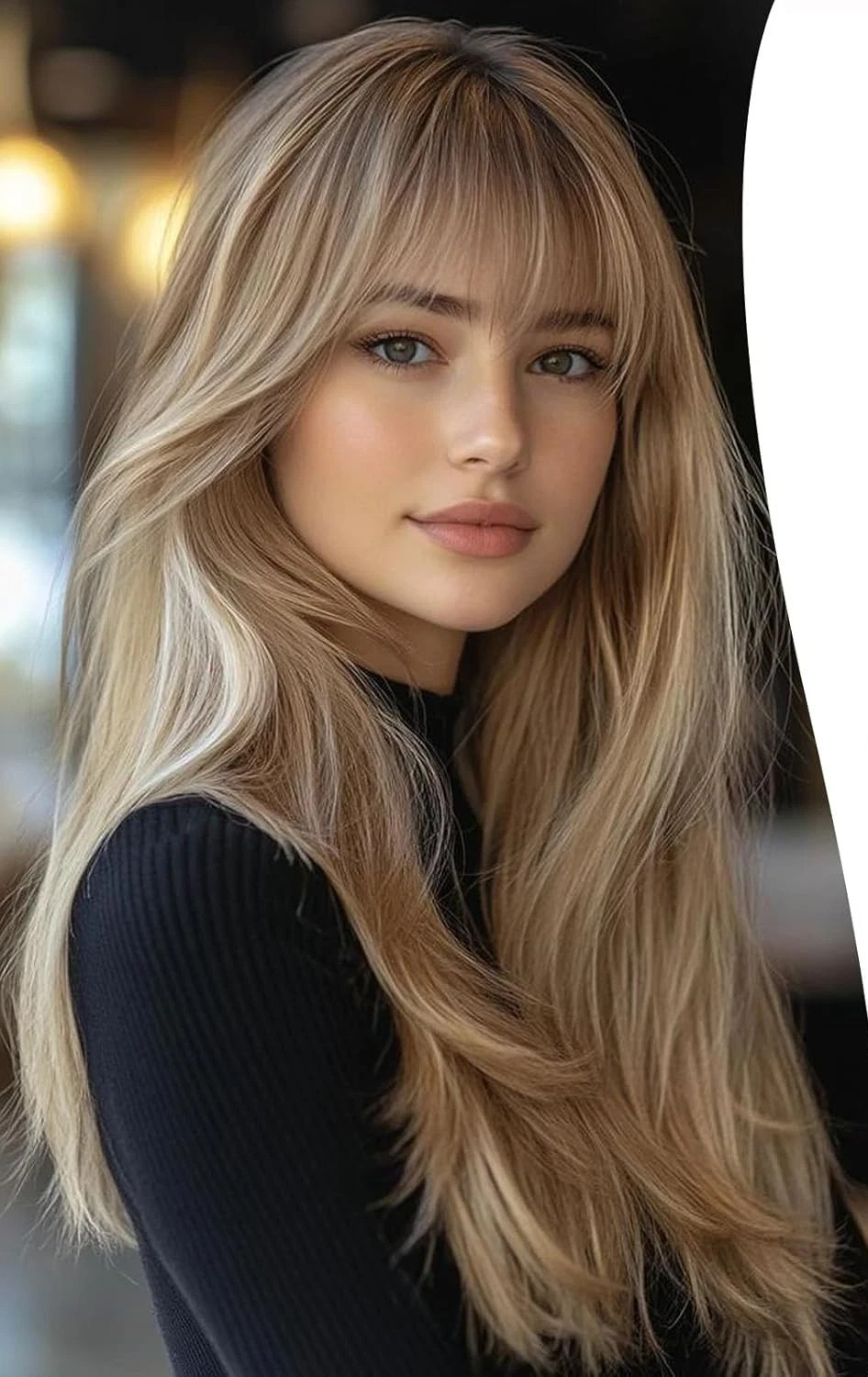Blonde with Dark Root with Bangs 24in Long Straight Women Hair Topper
