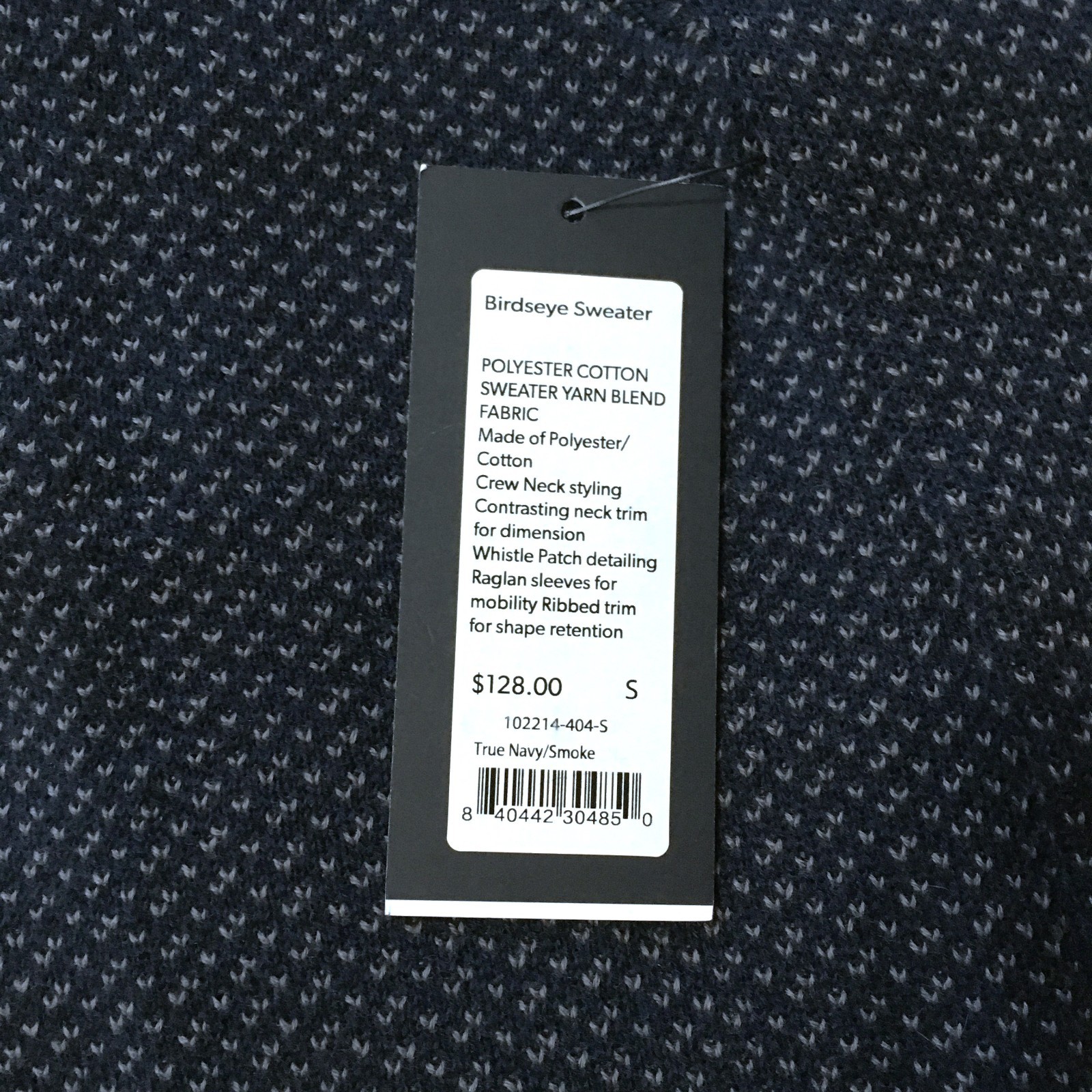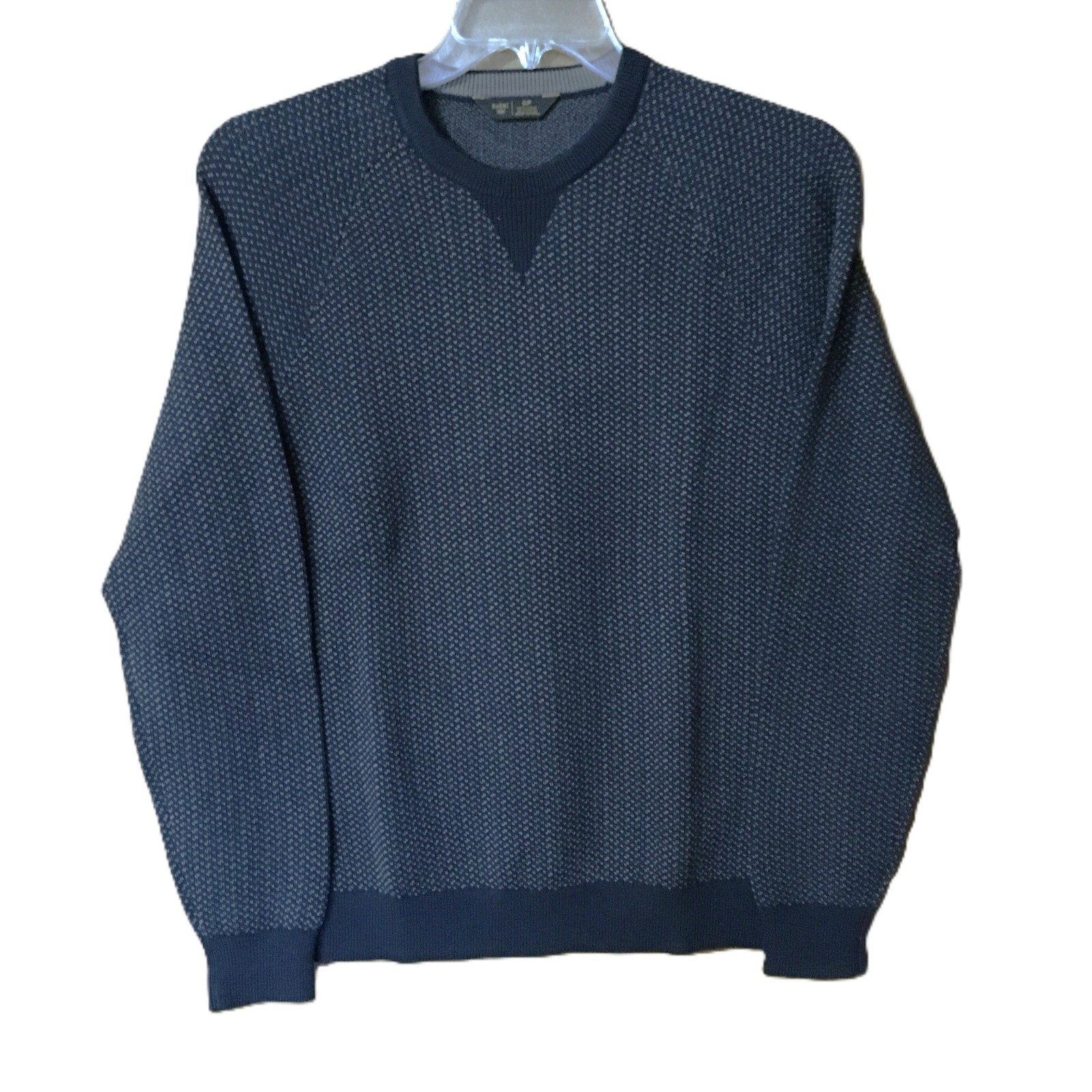как выглядит RHONE Mens Navy/Smoke Birdseye Performance Knit Crewneck Sweater-Small, NWT фото