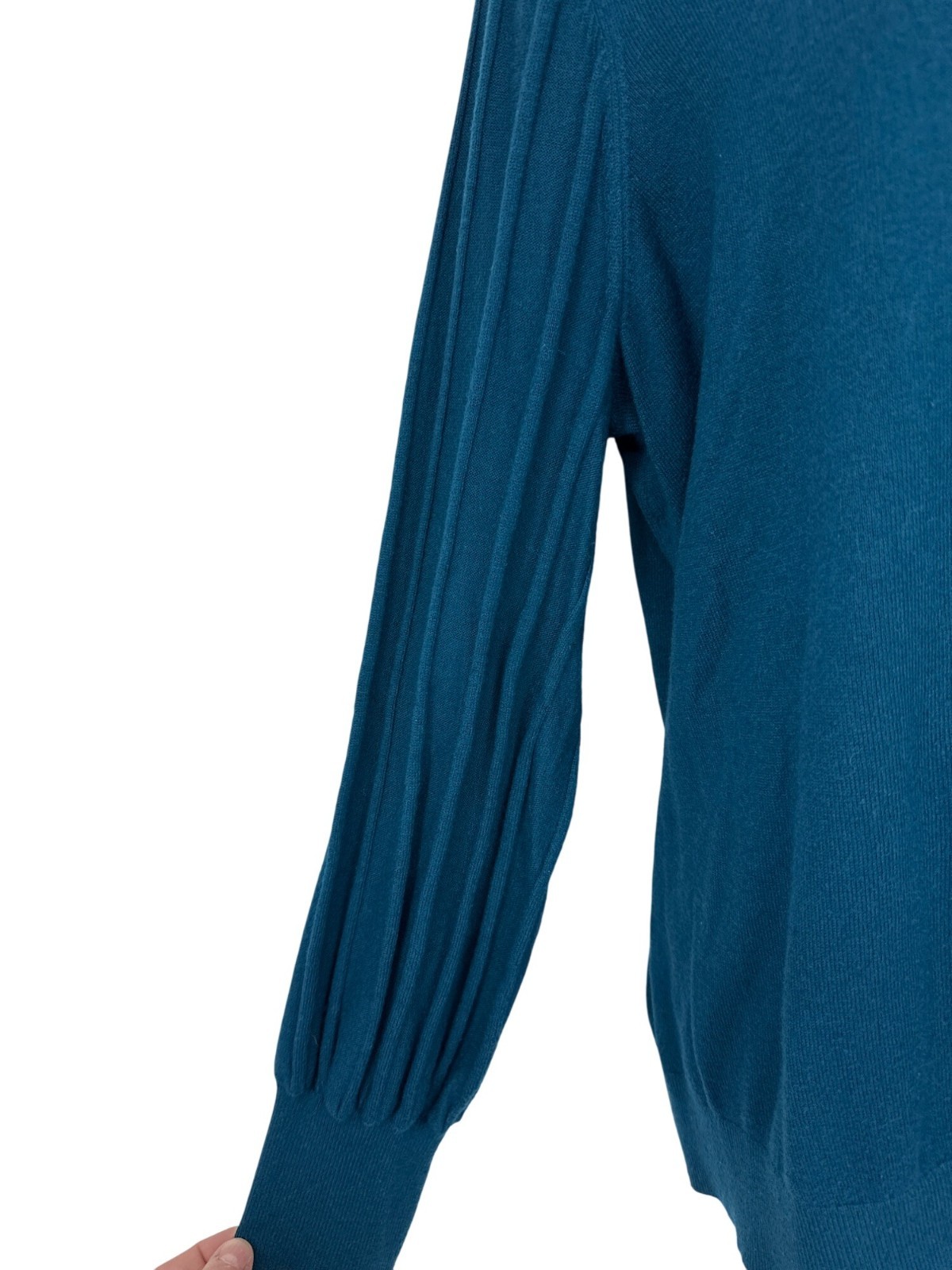 как выглядит Chicos Teal Blue Scoop Neck Long Sleeve Pullover Sweater Women