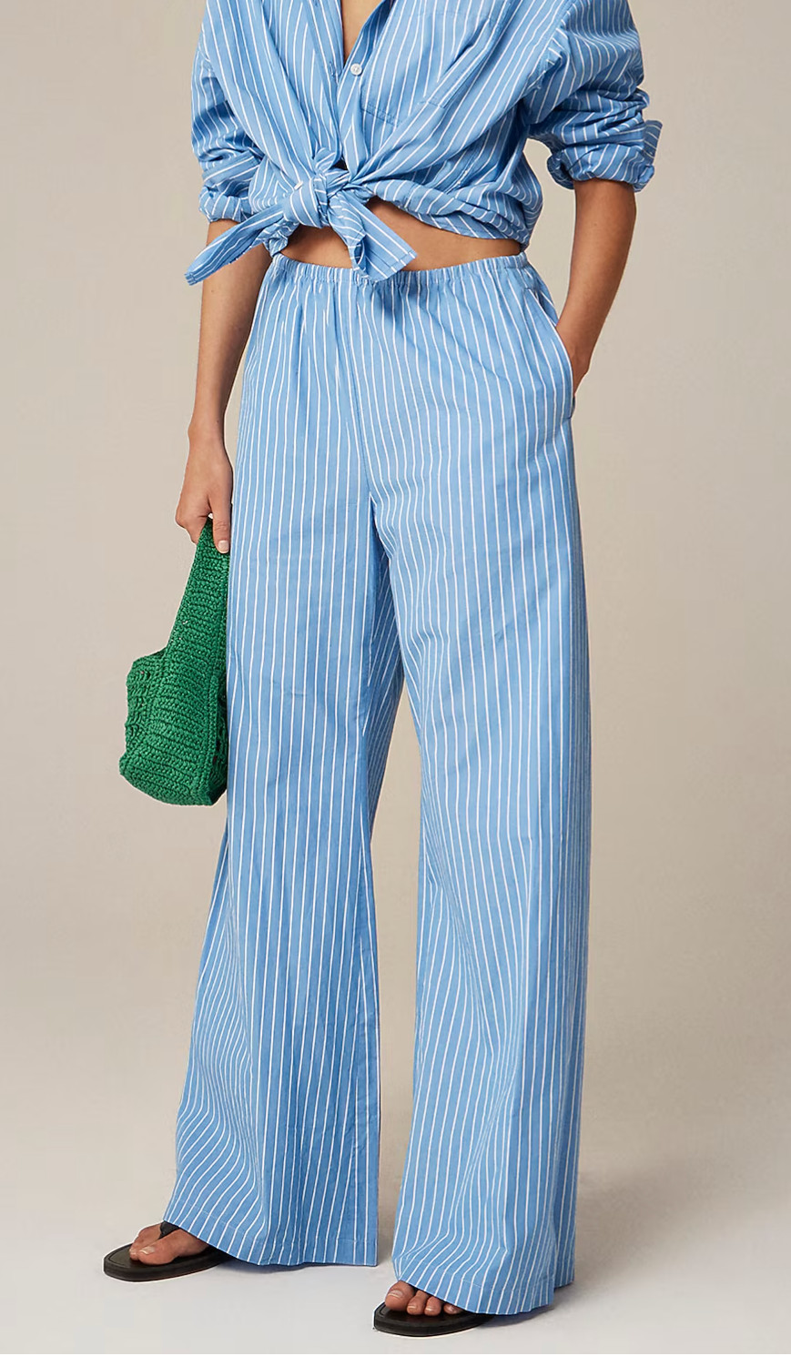 J. Crew Womens M Cosmo Pant Oxford Stripe Blue White Wide Leg NEW Pull On CN271