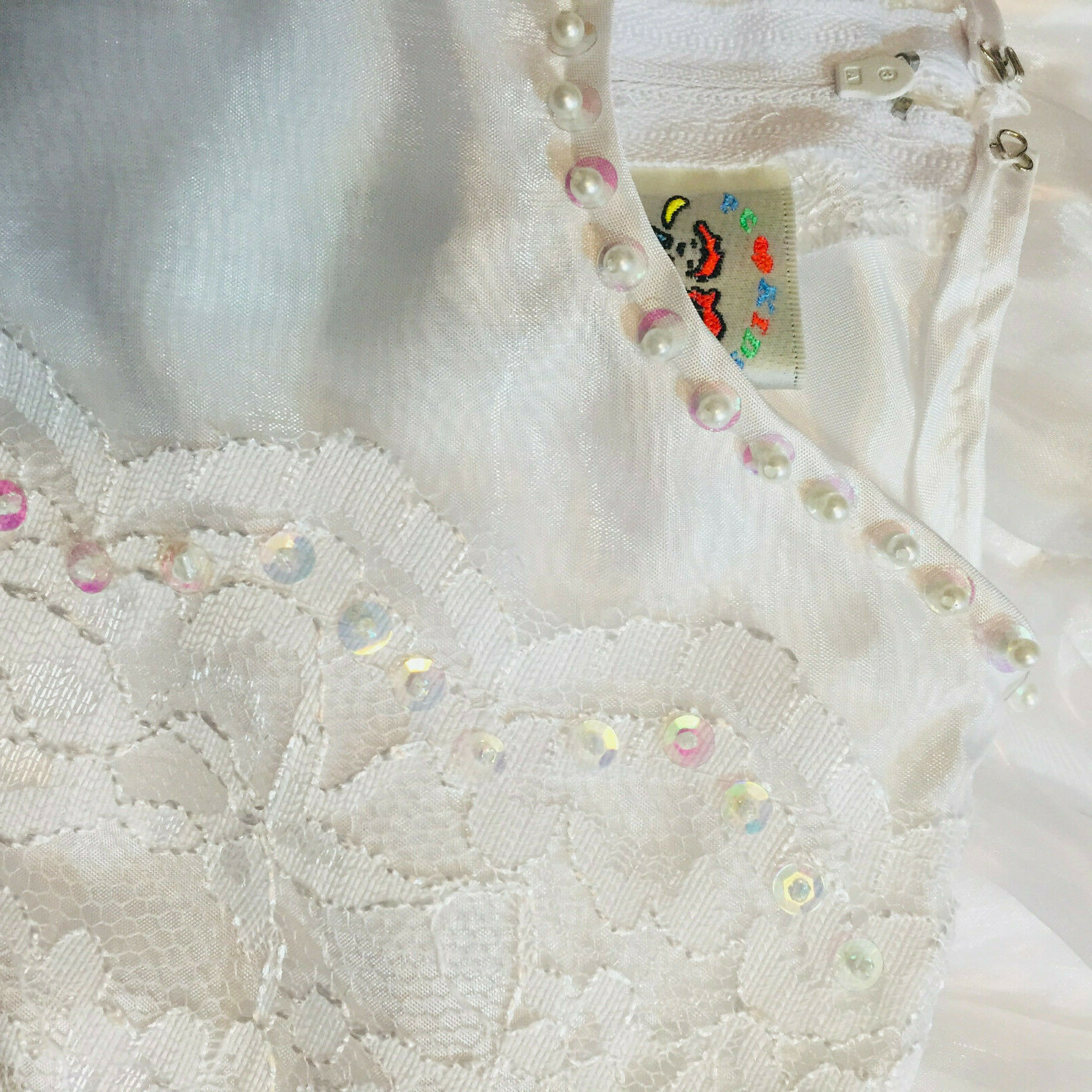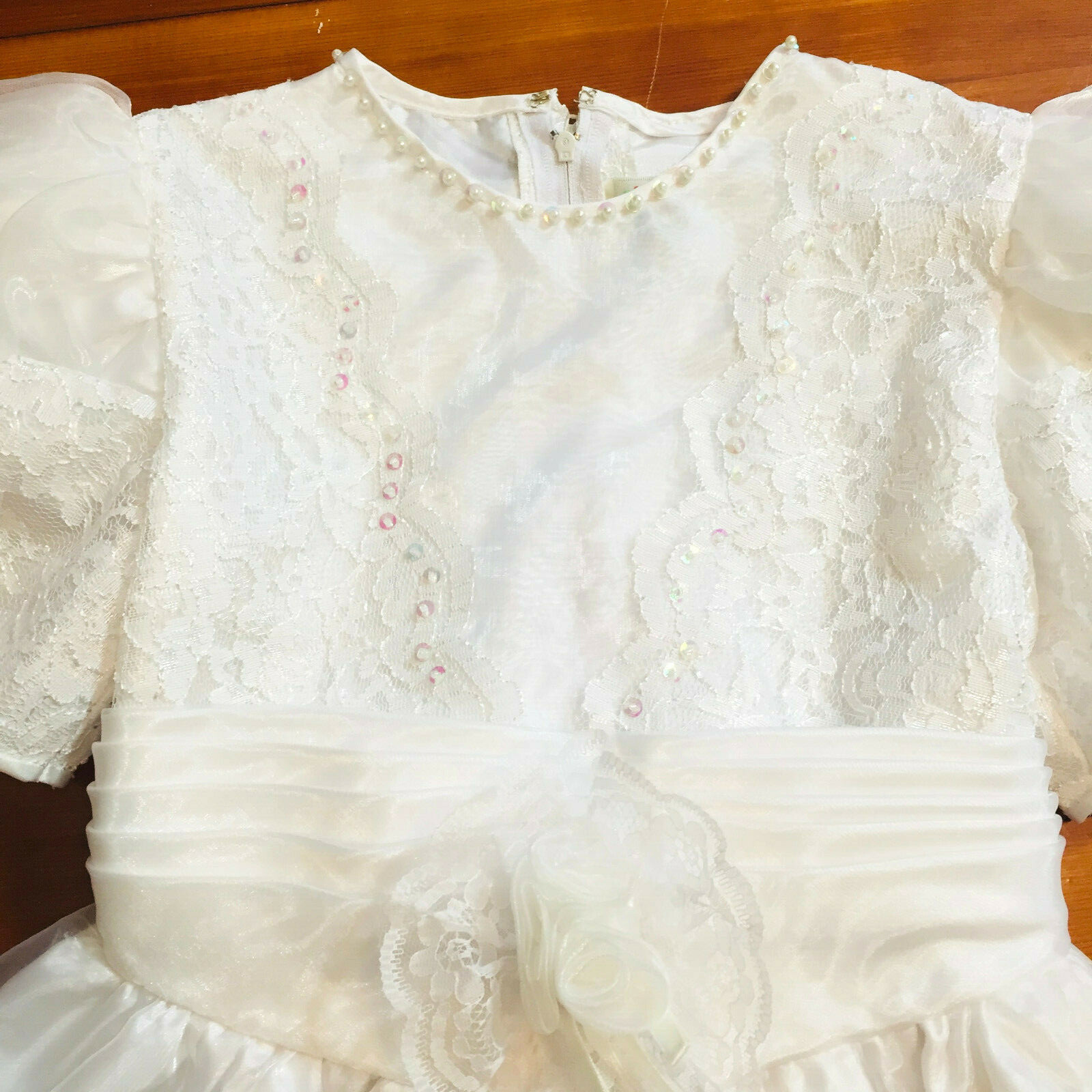 Girl's dress 6X pageant full skirt white First Communion sequins PC KIDS F