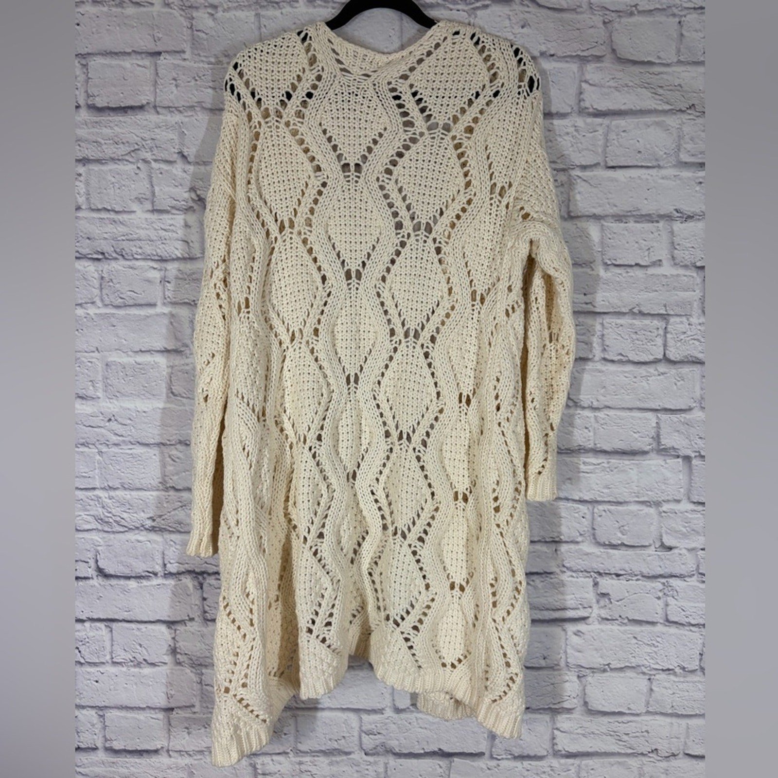 как выглядит Boston Proper Cream Open Knit Boho Crochet Duster Cardigan 100 Cotton Size M фото