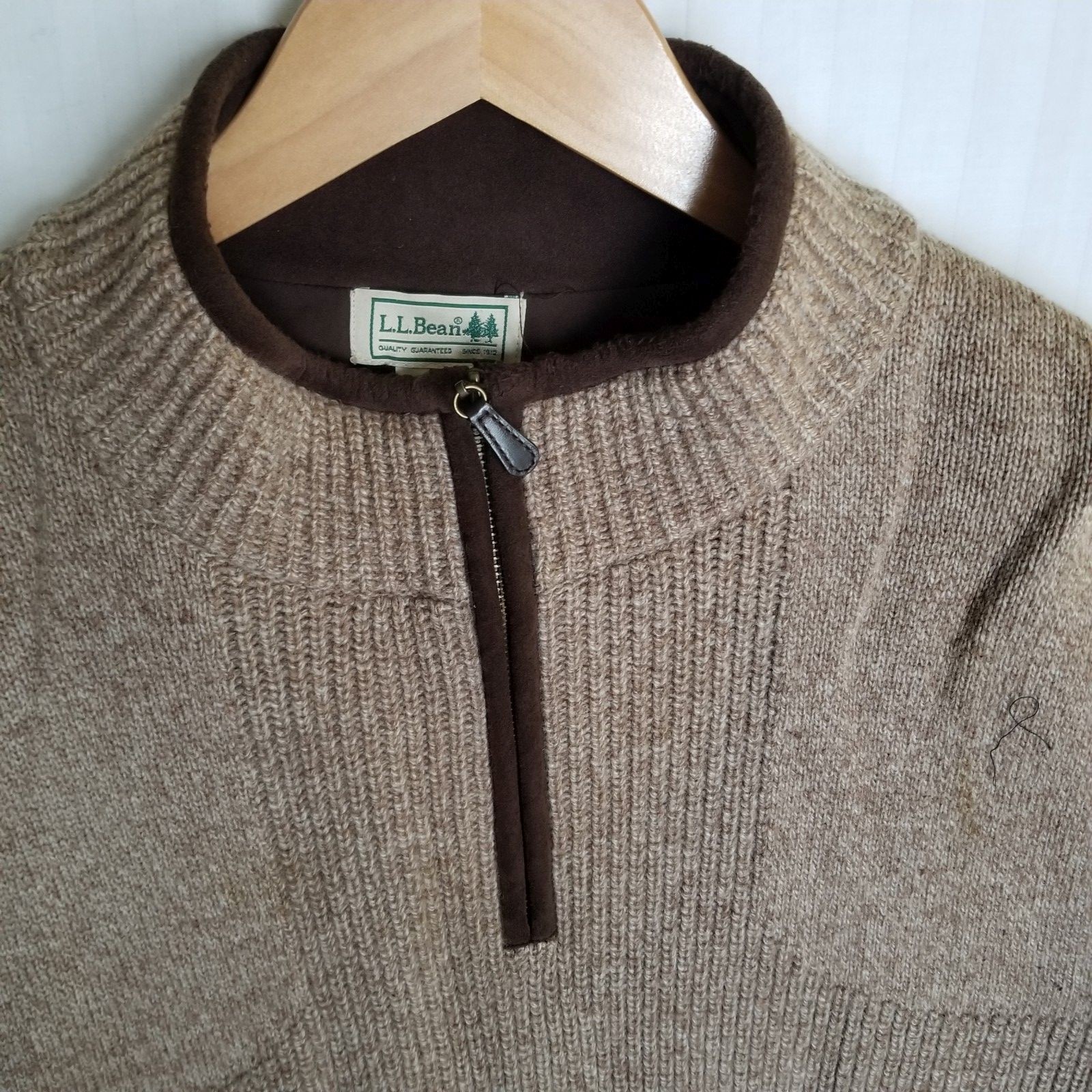 как выглядит L.L. Bean Mens Merino Wool Half Zip Sweater Pullover L-Tall Brown Polyester Lin фото