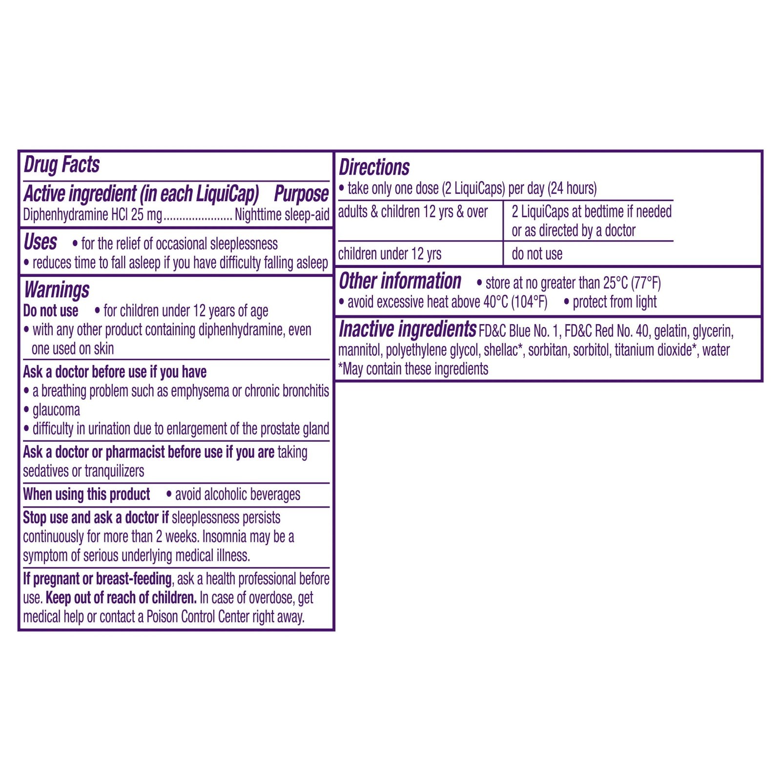 Active Ingredients: Diphenhydramine
