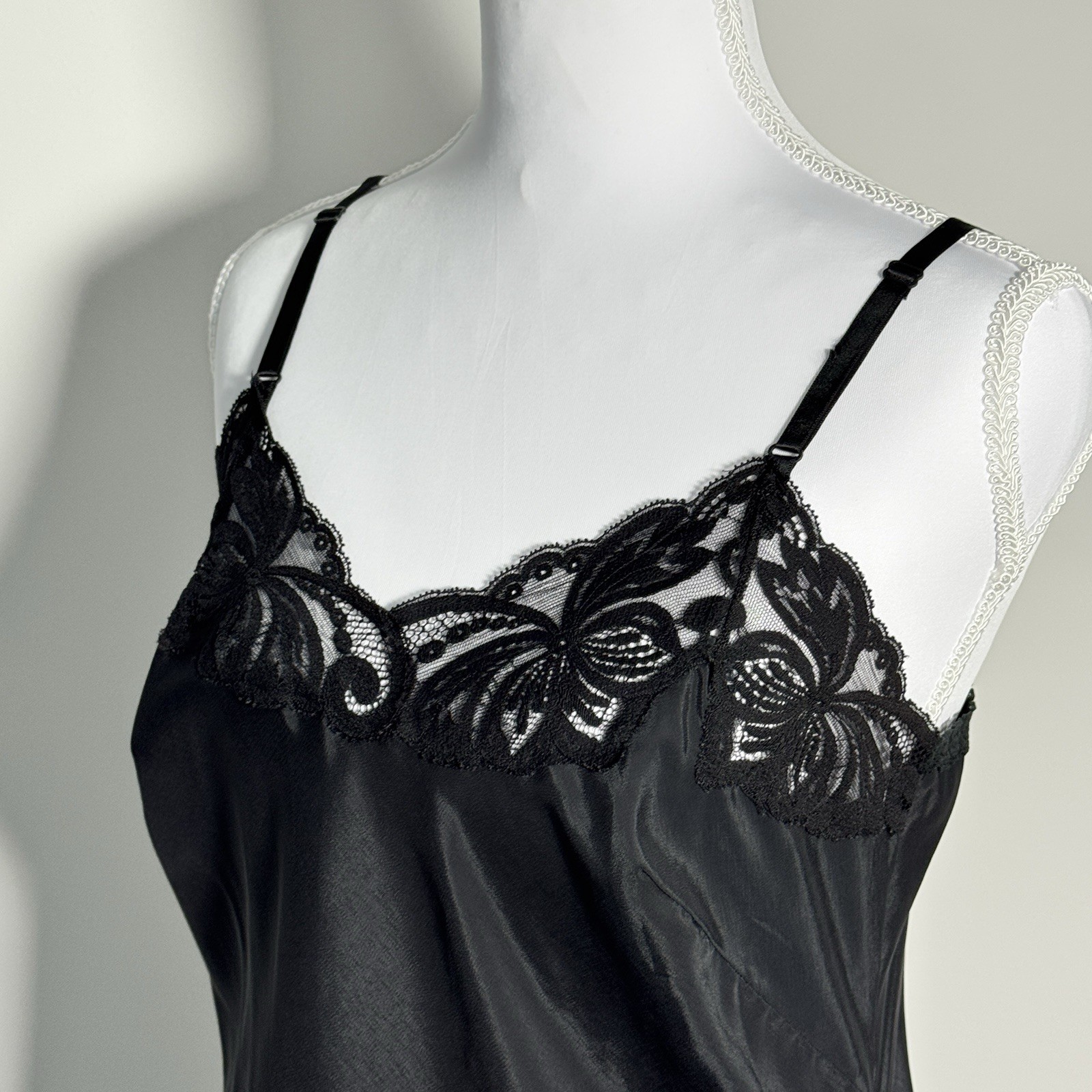 как выглядит Vtg Wonder Maid Full Slip Black Nylon Blend Non Cling Sz 34 USA Hollywood Glam фото