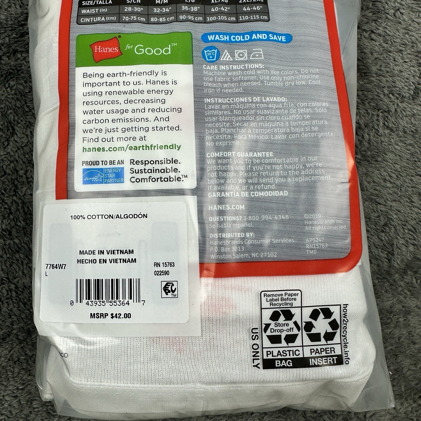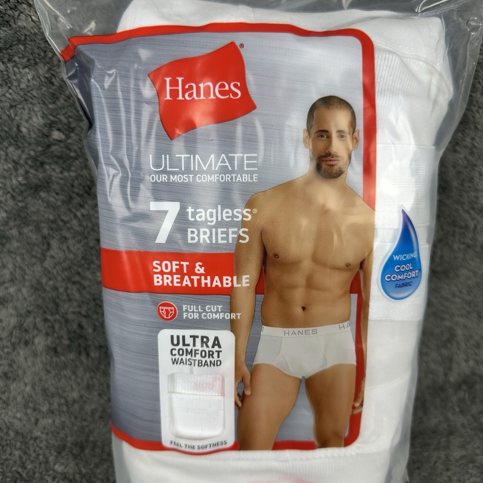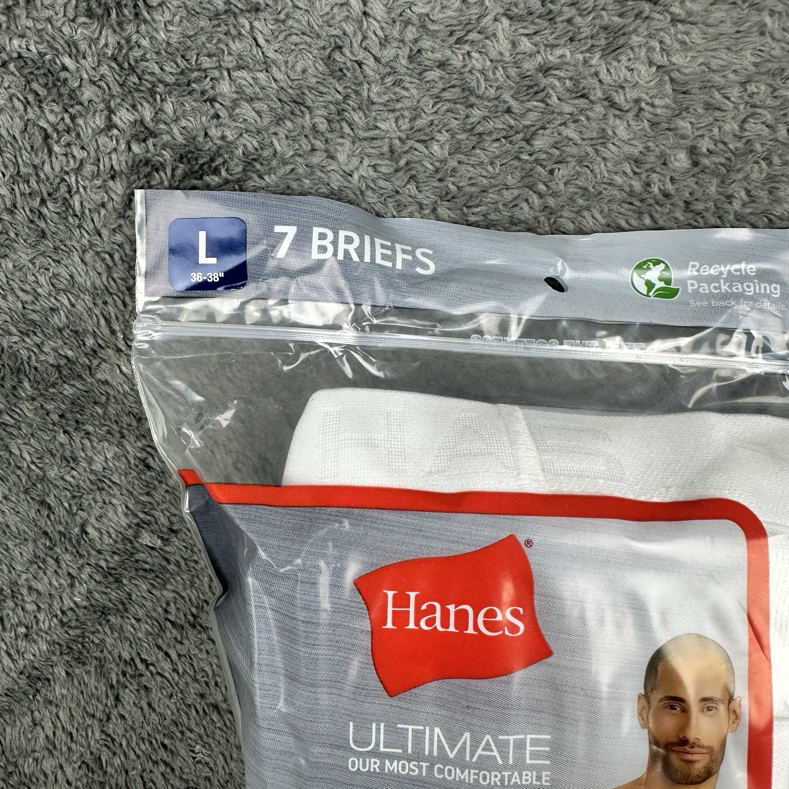Hanes Ultimate Tagless Briefs Men's Size Large Pack of 7 NEW 2019 White 36-38