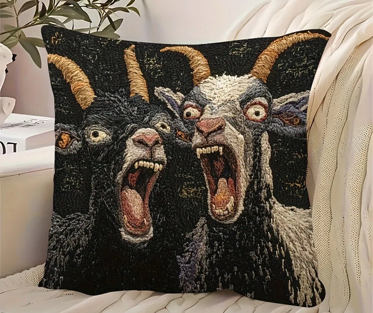 как выглядит ANGRY COMICAL GOAT 18X18 THROW PILLOW CASE COVER DOUBLE SIDED 2D PRINT FABRIC Ne фото