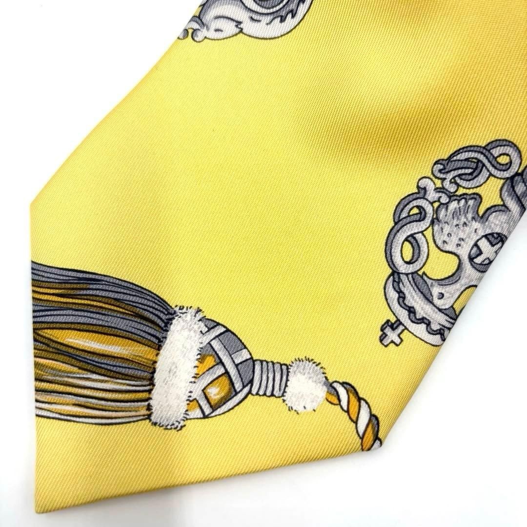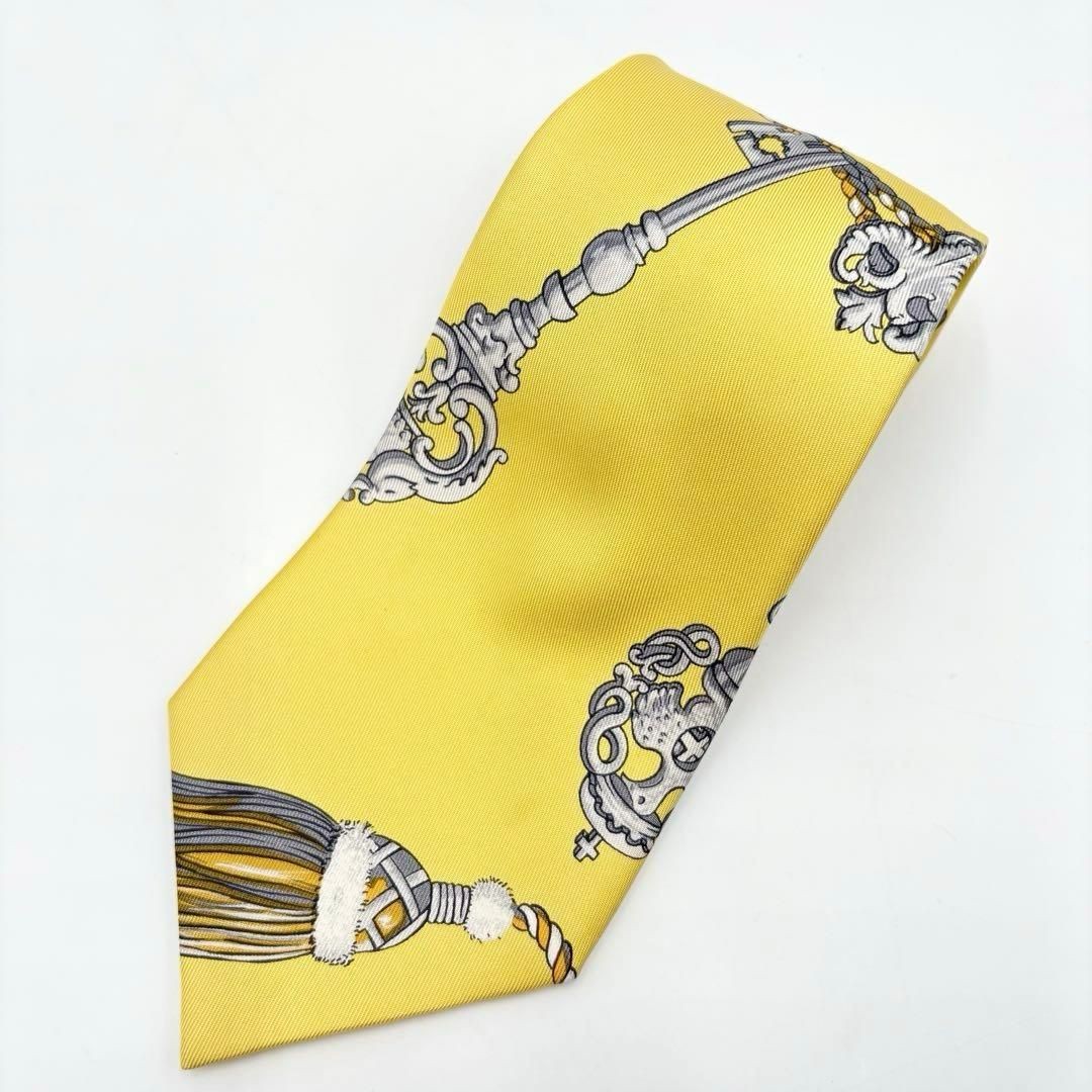 как выглядит Excellent condition HERMES Carre Scarf Pattern HERES Silk Tie Keys Tassels Wide фото